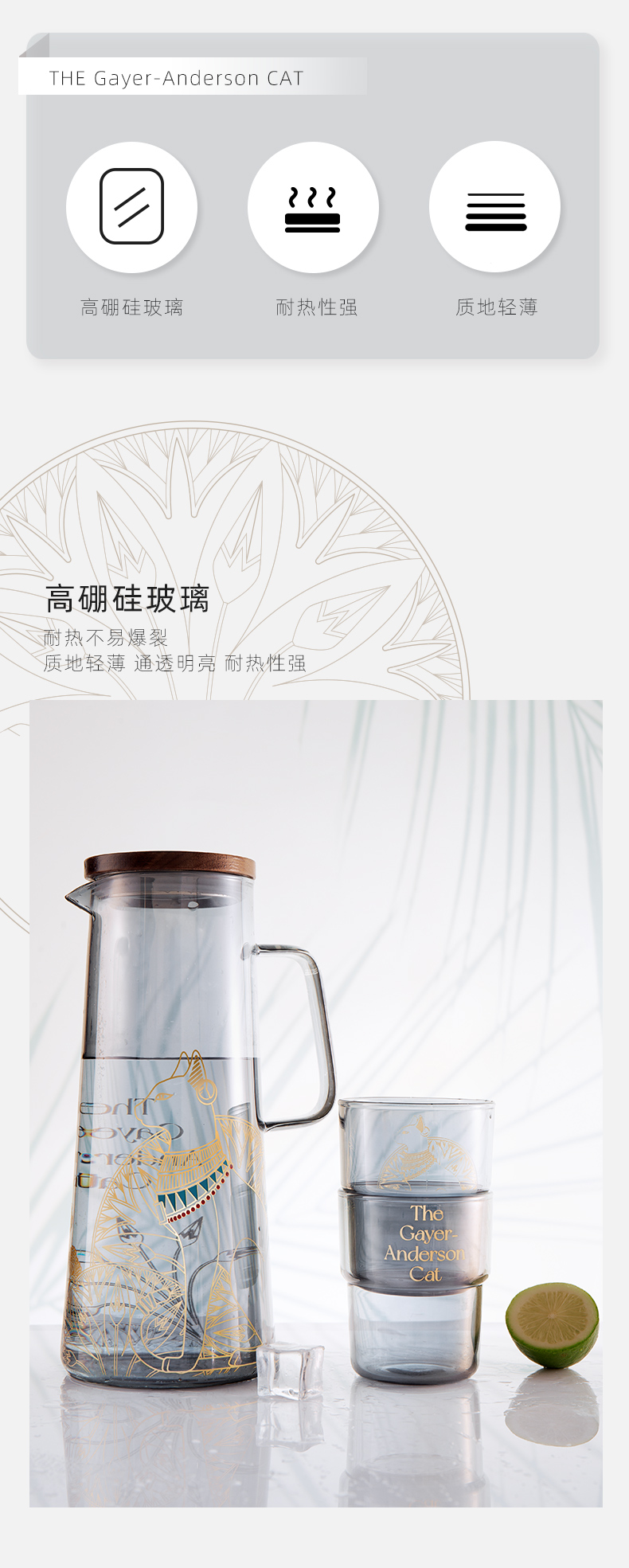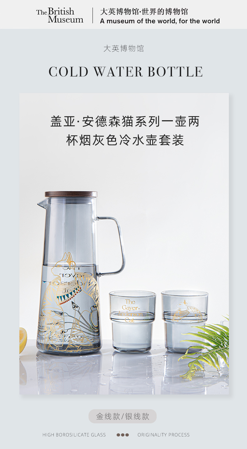 大英博物馆 盖亚·安德森猫系列 一壶两杯 烟灰色 冷水壶 套装 金线款 银线款 生日礼物礼盒 节庆礼物