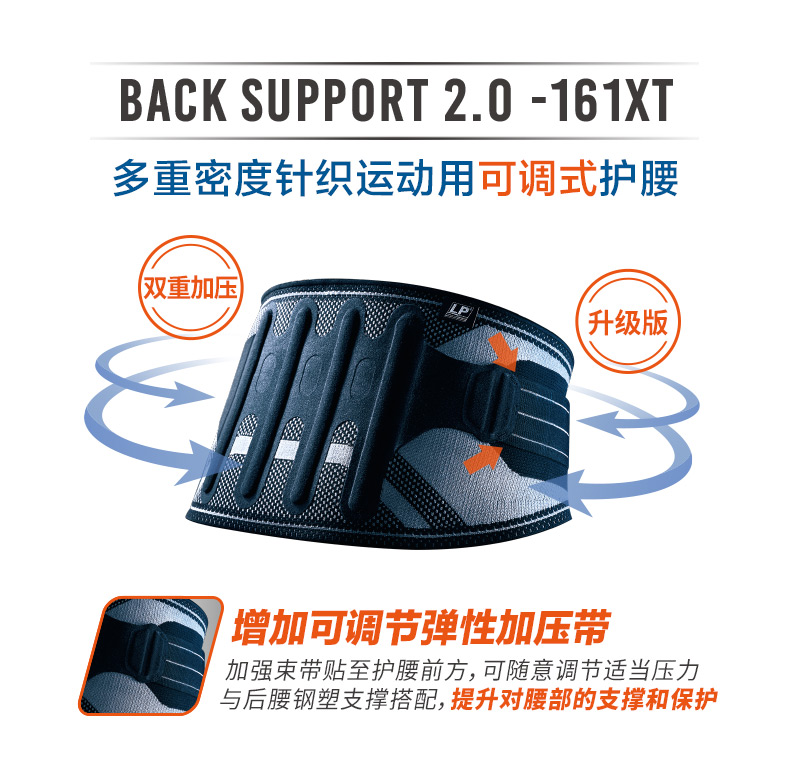 LP 161XT 塑钢支撑条可调节运动护腰 摔跤举重健身背部支撑腰带