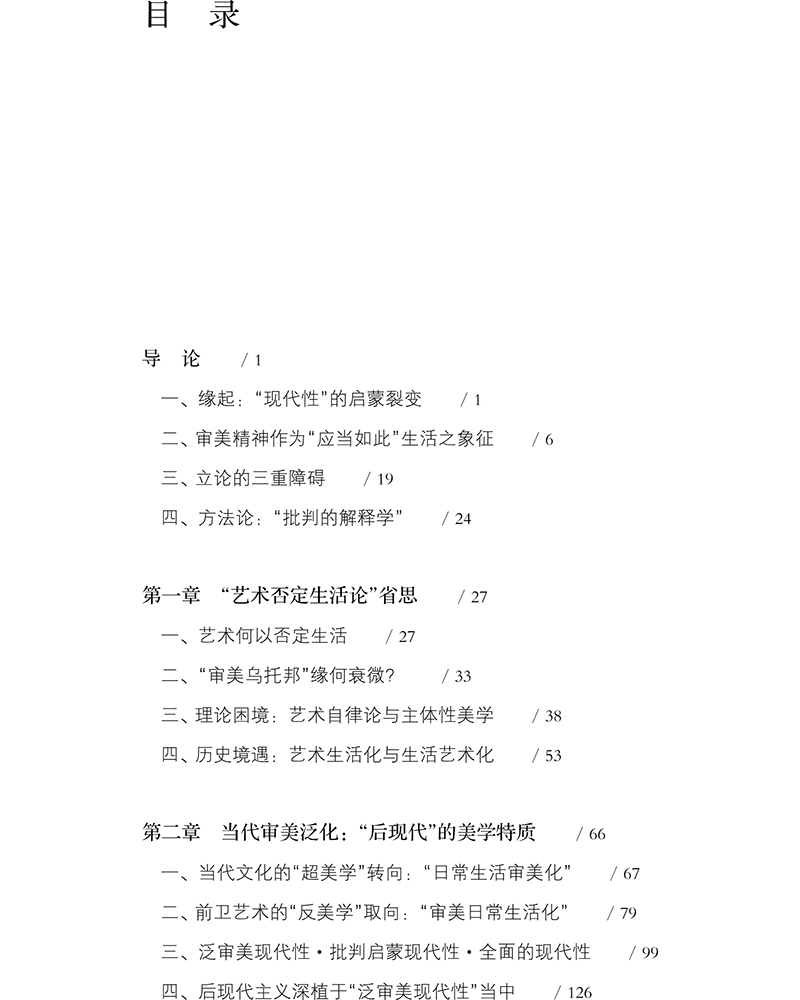 本书以艺术与生活的关系这一古老而又常论常新的问题作为中心内容,对西方从古至今最重要的哲学家、美学家的这一思想观点及其发展的历史过程和逻辑关系,加以系统地疏理、论述和批判,在批判的基础上综合出新,重构审美精神。启蒙时代以来,随着文化领域的理性分化,本来密切相联的科学、道德、艺术发展为相互绝缘、不相往来的独立领域,各自探讨自己的问题。科学属于“认知理性”,探讨“真实性问题”(真),道德属于“伦理理性”,探讨“正当性问题”(善),艺术属于“审美理性”,探讨“趣味性问题”(美)。真善美分家并愈演愈烈,使整个生活系统陷入分裂状态。在整个生活系统的理性分化过程中,科学技术与“合理性”相互结合而固化为现代社会的组织形式,它将手段与目的相互倒置、事实与价值严格分裂,并造成人在现实生活中的“异化”、“物化”或“单向度”状态。 “现代性”的极端化,已使真善美理想与现实、人性与物性形成错位。如何解决这一矛盾?作者认为,根本出路是回归人类的生存活动之中,使真善美在生活的基础上达到统一。