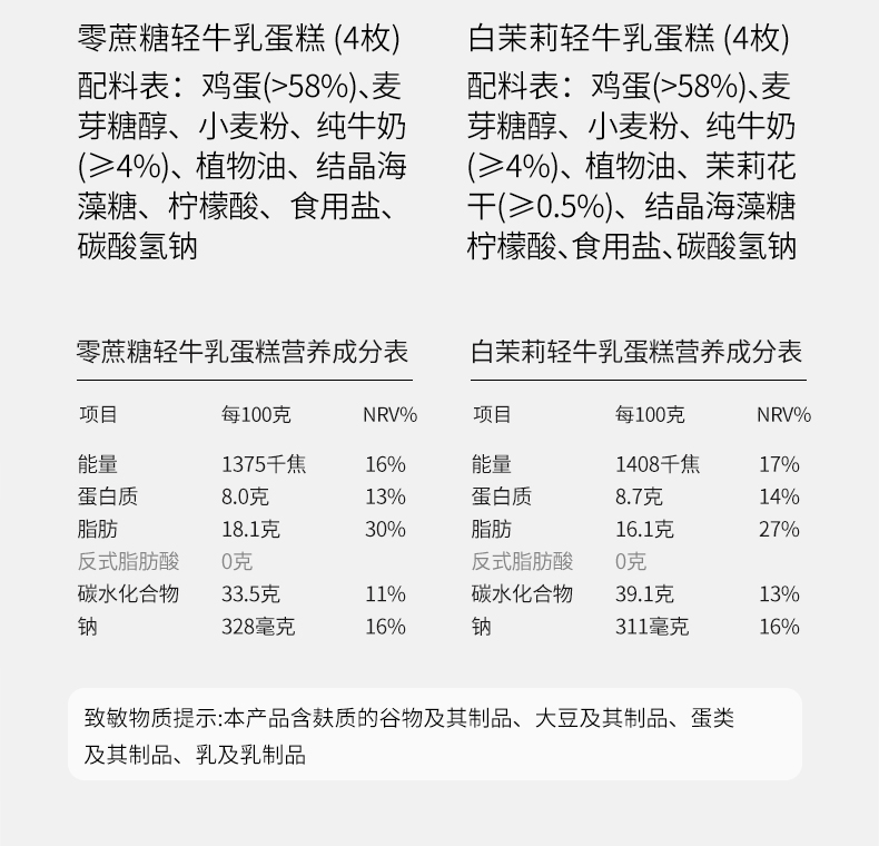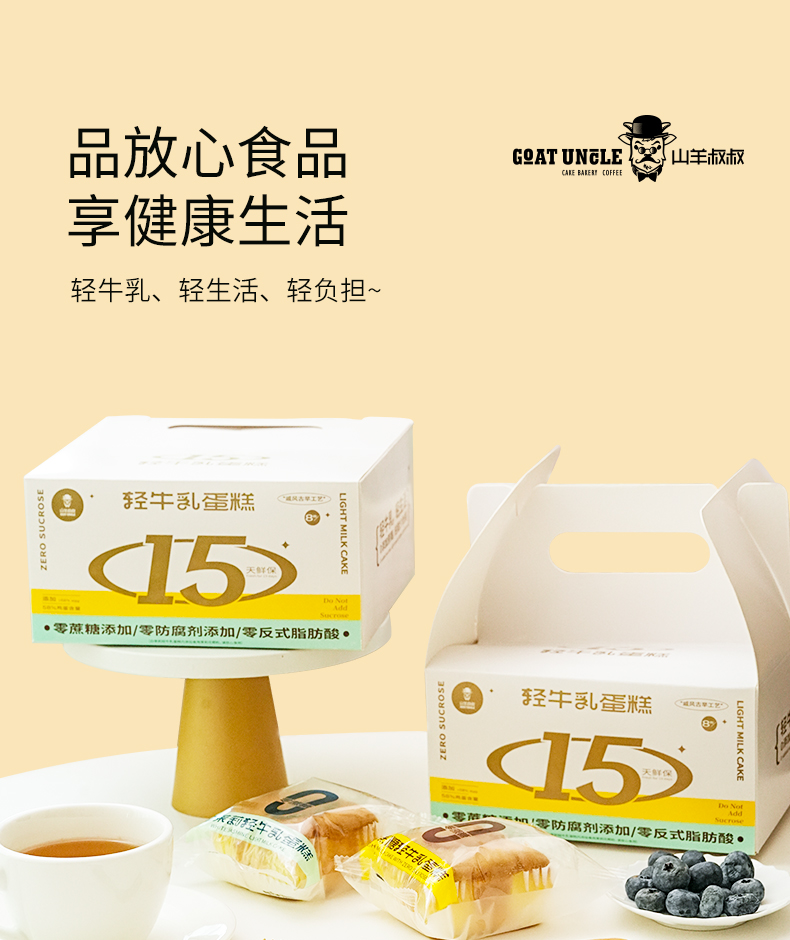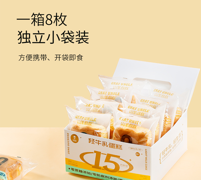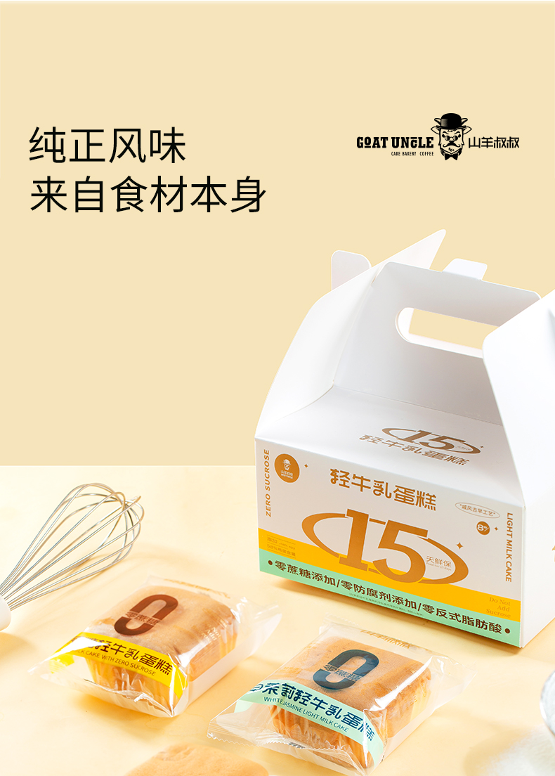 山羊叔叔 轻牛乳蛋糕 612g 零蔗糖轻牛乳味4个+白茉莉味8个 低卡低脂,健康无负担;58%鸡蛋含量,4%纯牛奶添加,口感细腻、蓬松绵软