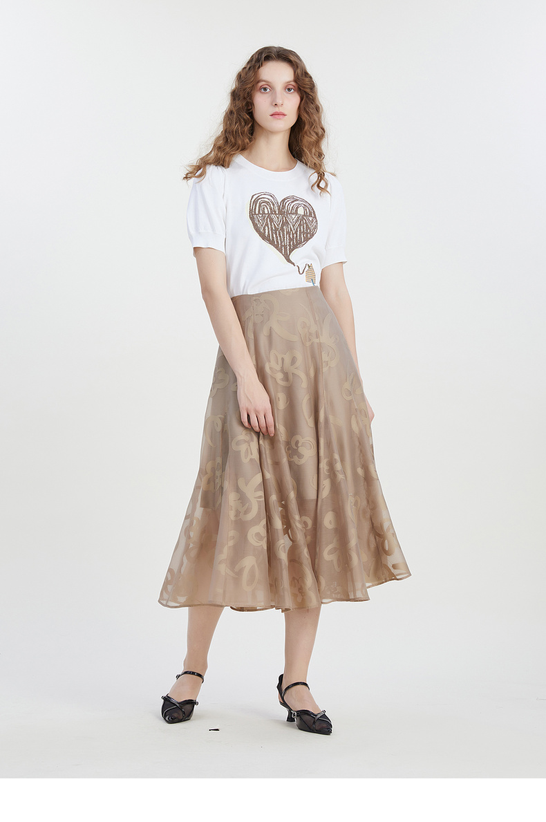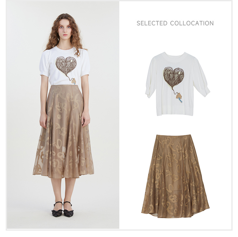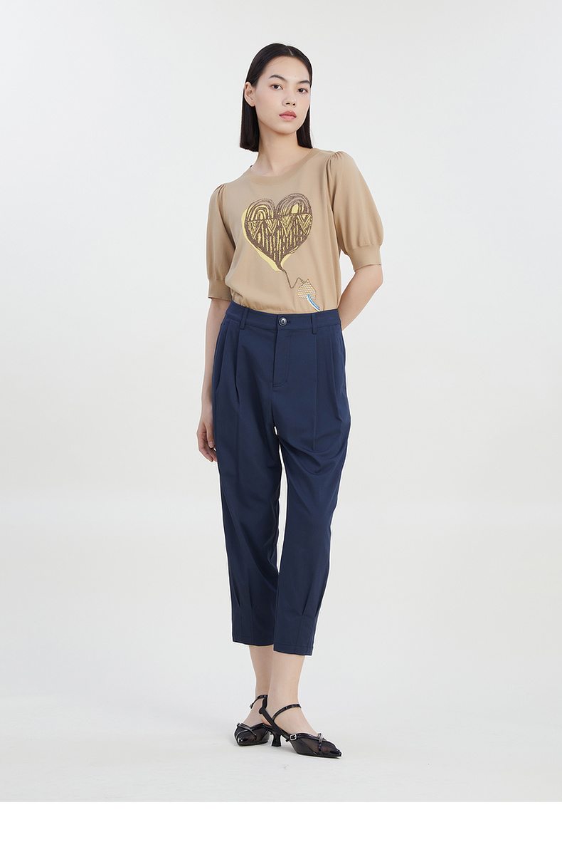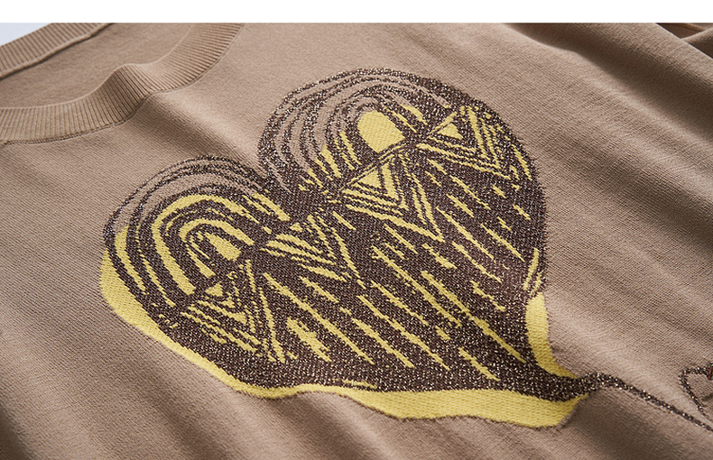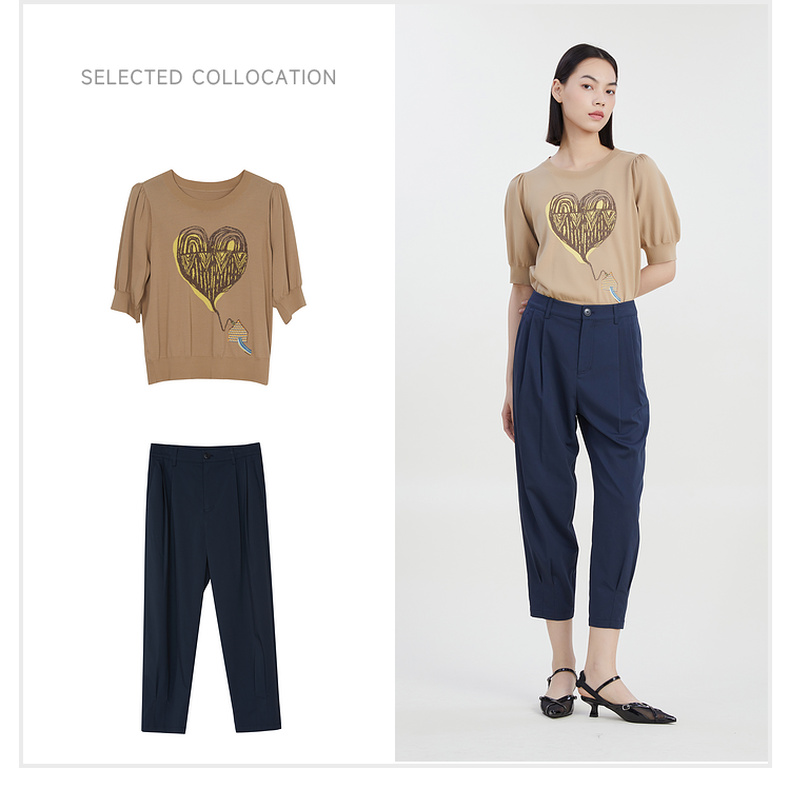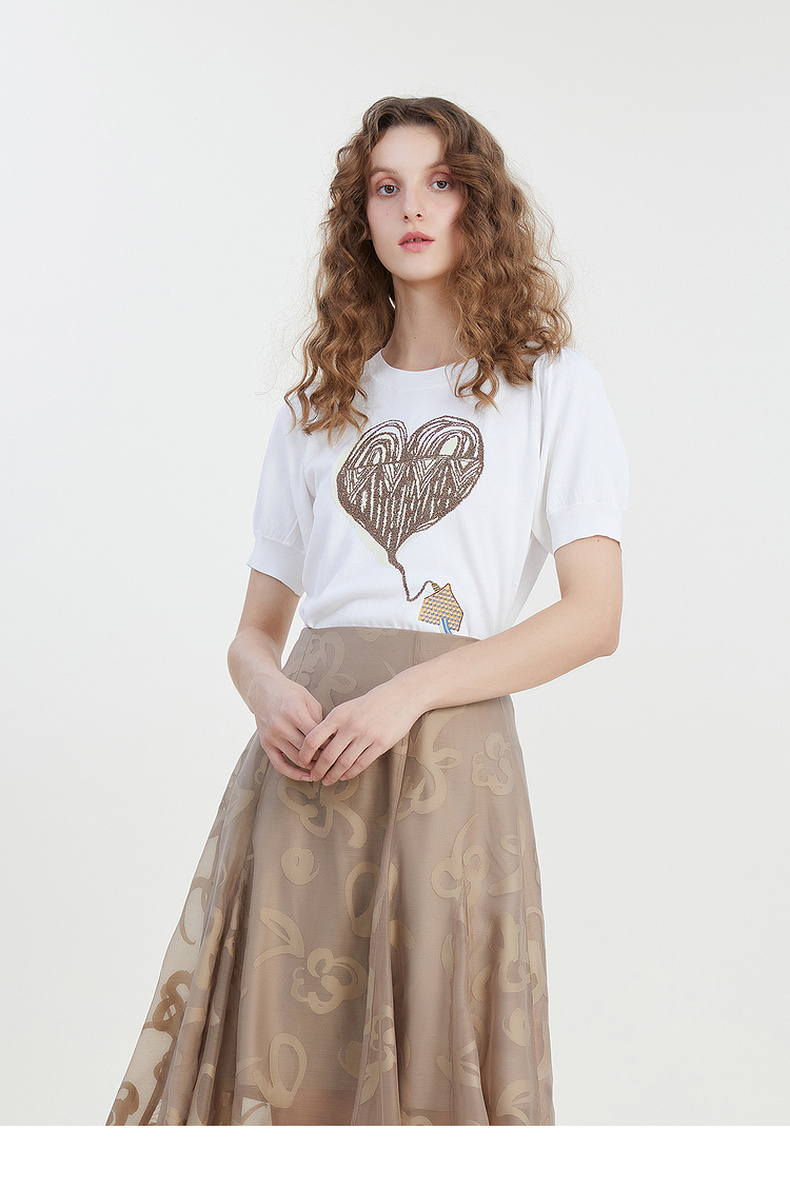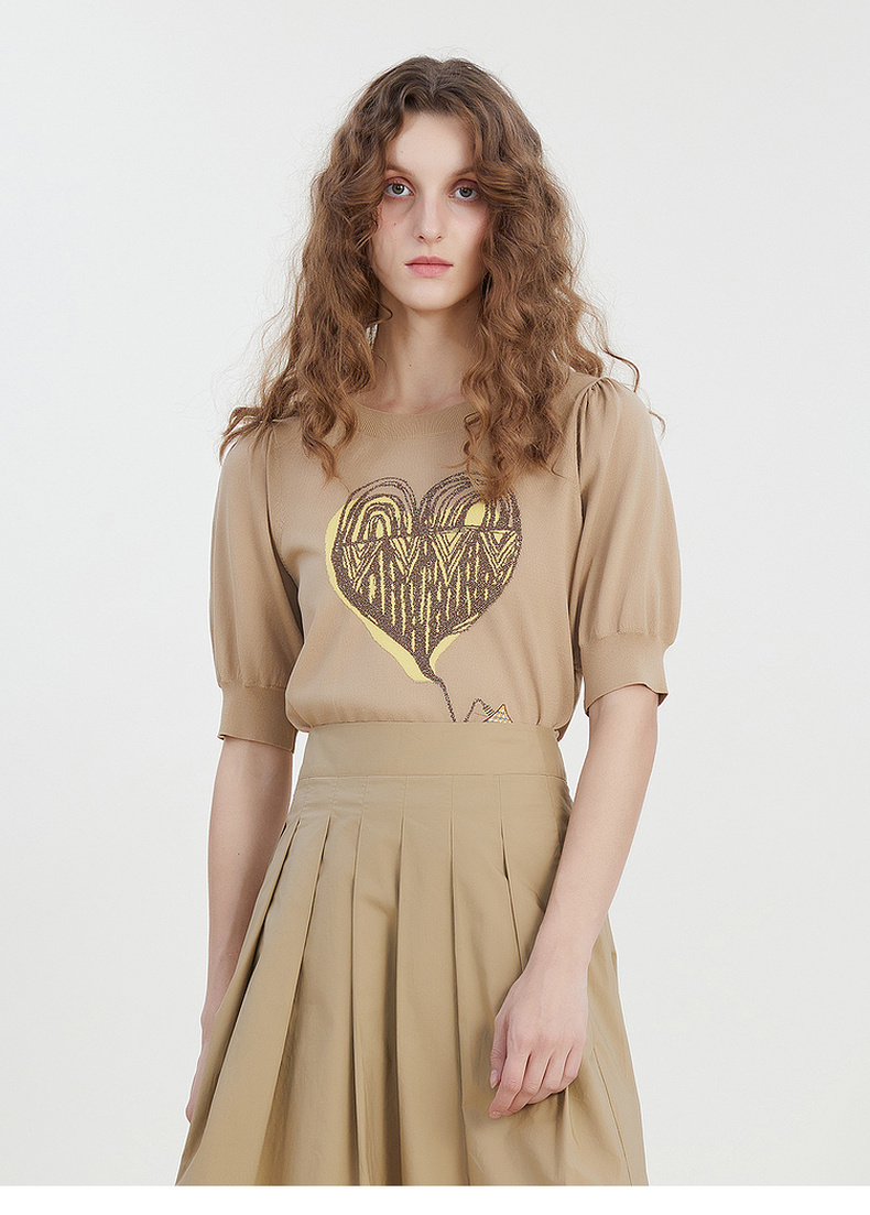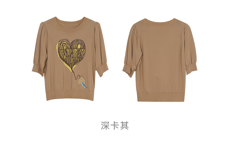 谜底2023夏新款圆领套头针织衫短袖女爱心修身短款毛衫232MZ0868