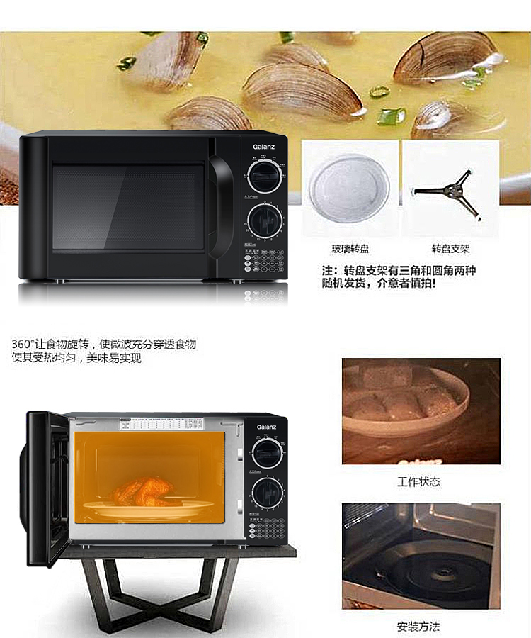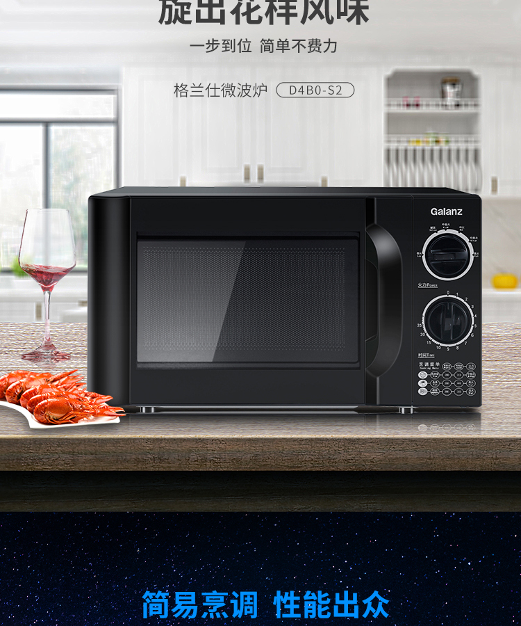 格兰仕(Galanz)微波炉-D4B0-S2 六档火力旋钮 易清洁 小型迷你微波炉 20L容量