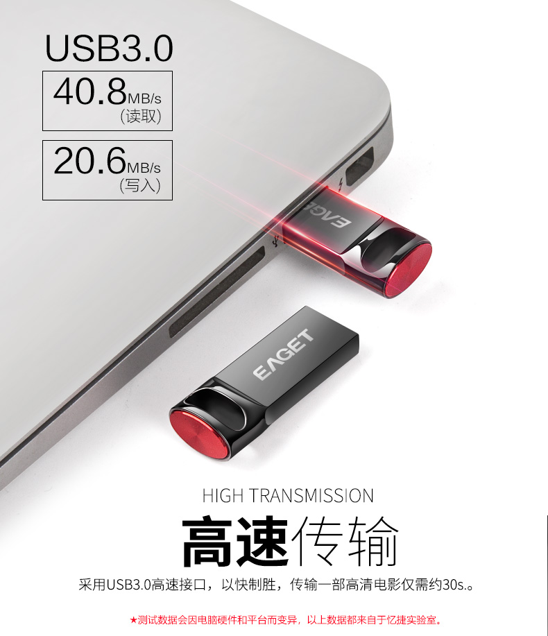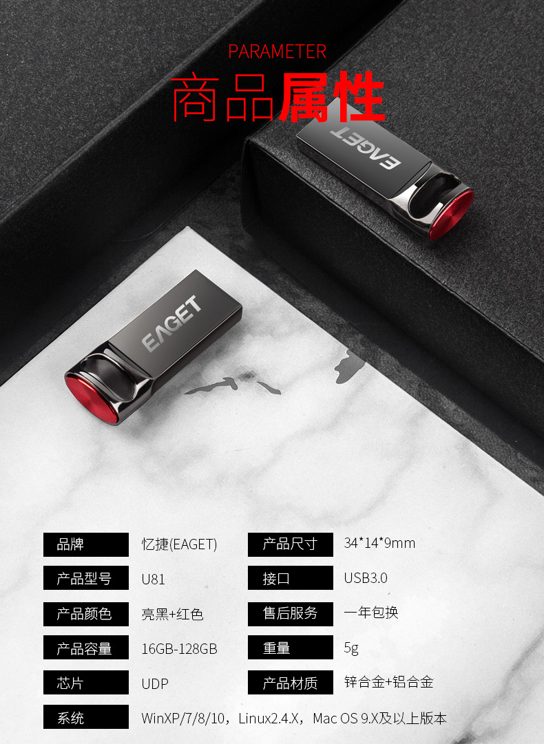忆捷U盘 USB3.0高速优盘U81 全金属轻松便携车载音乐 128GB