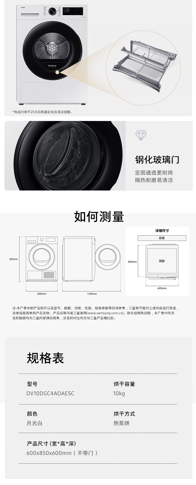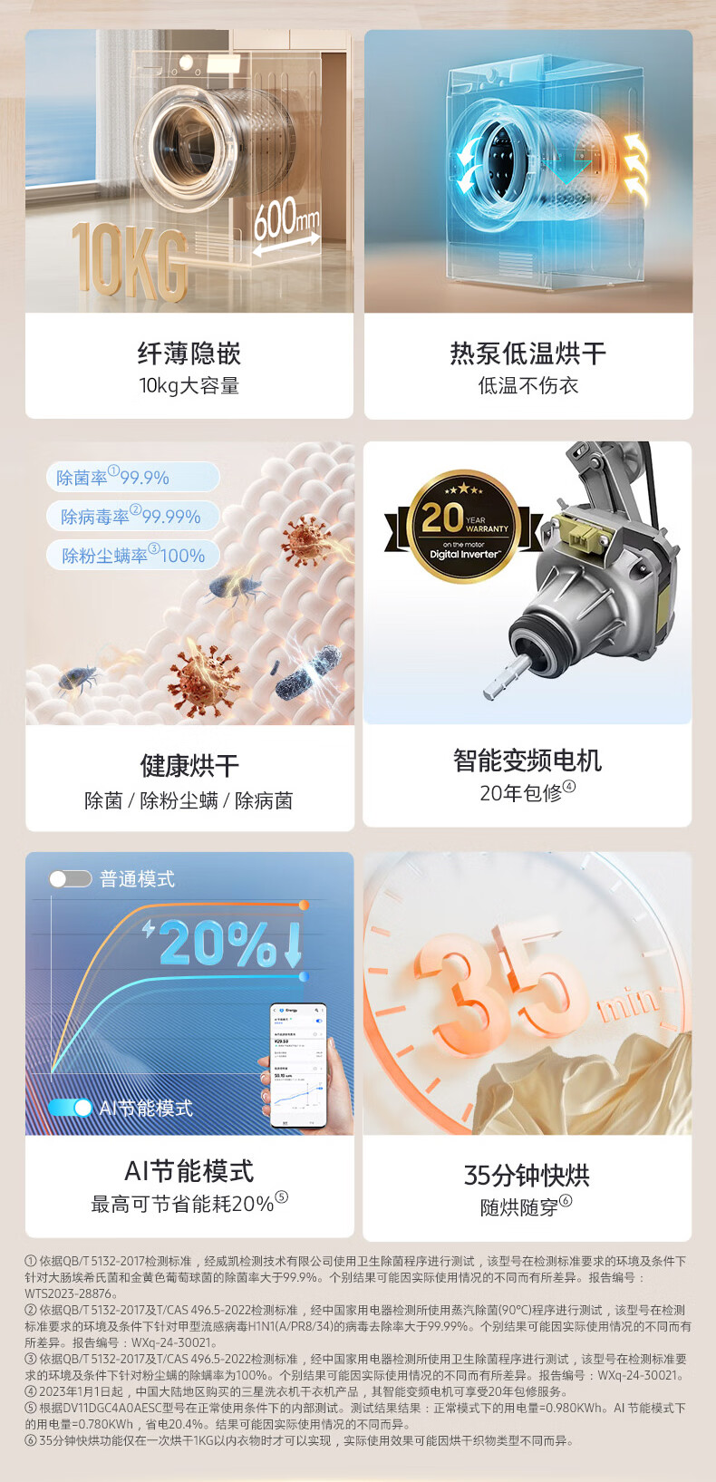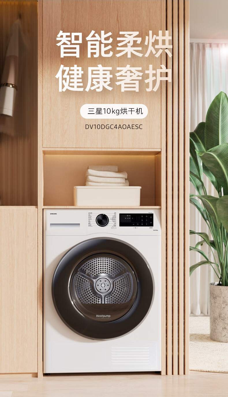 三星AI神干衣机5系 10KG全自动滚筒DV10DGC4A0AESC AI智能烘干机 蒸汽除菌除螨 月光白