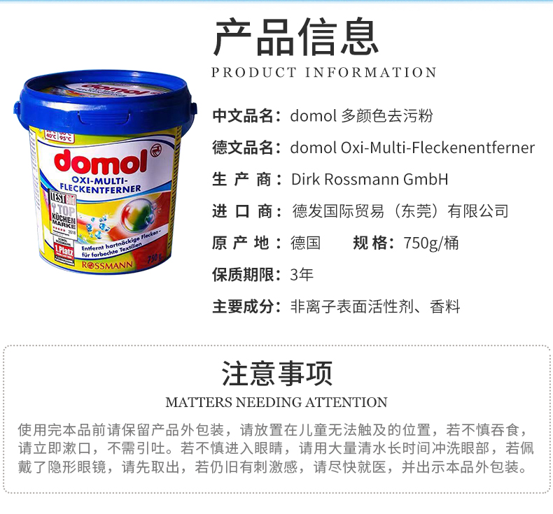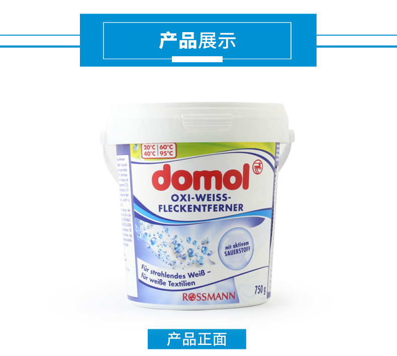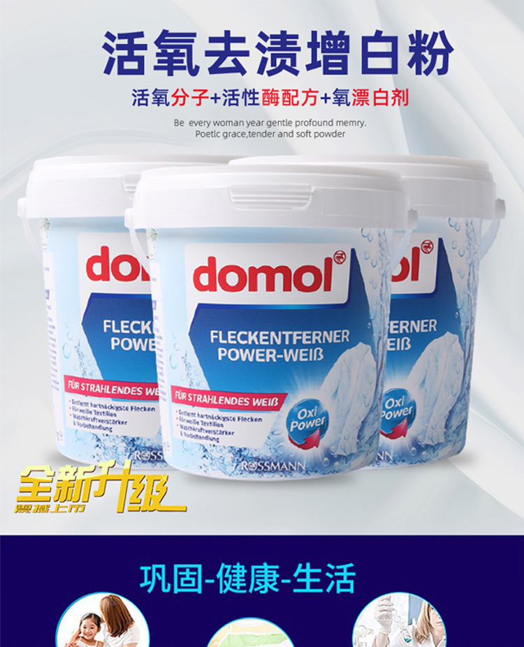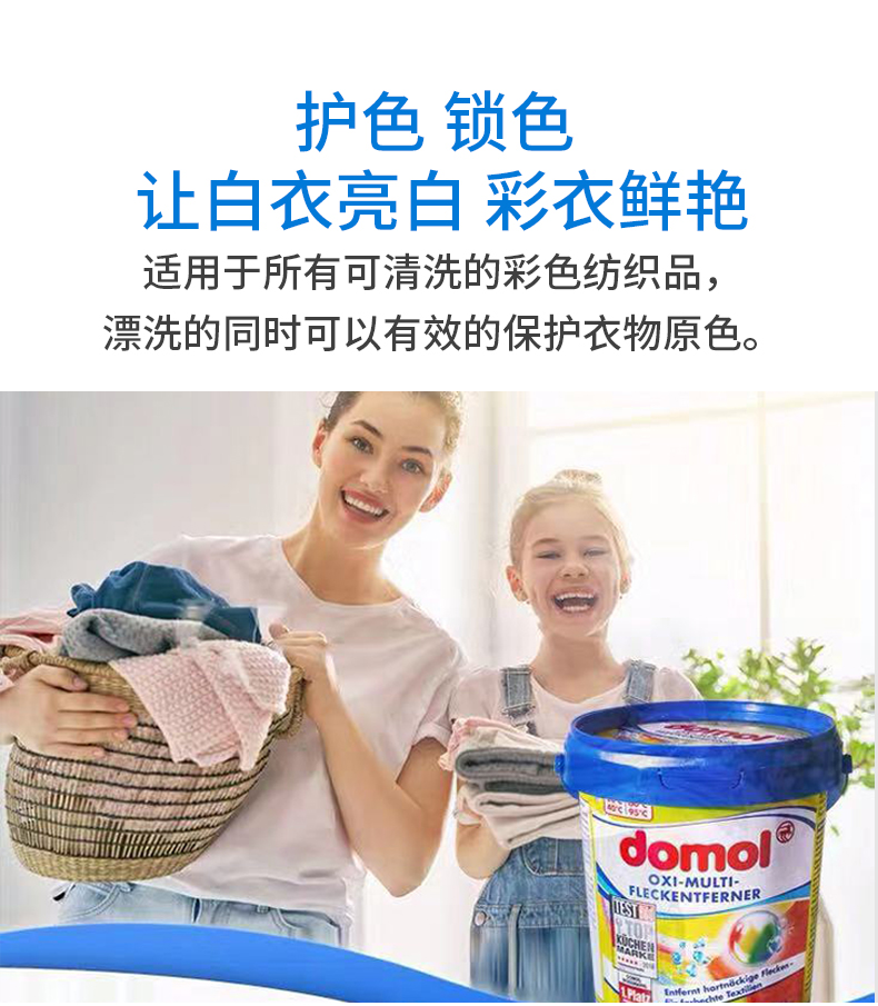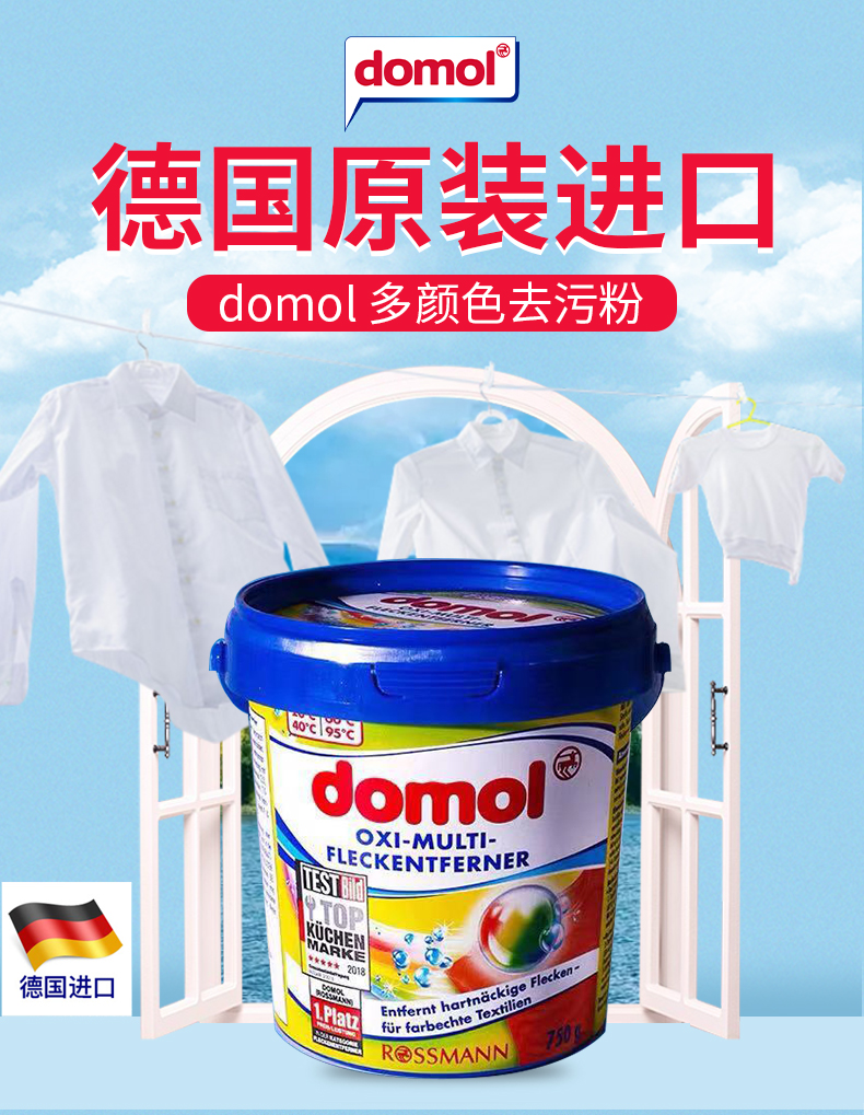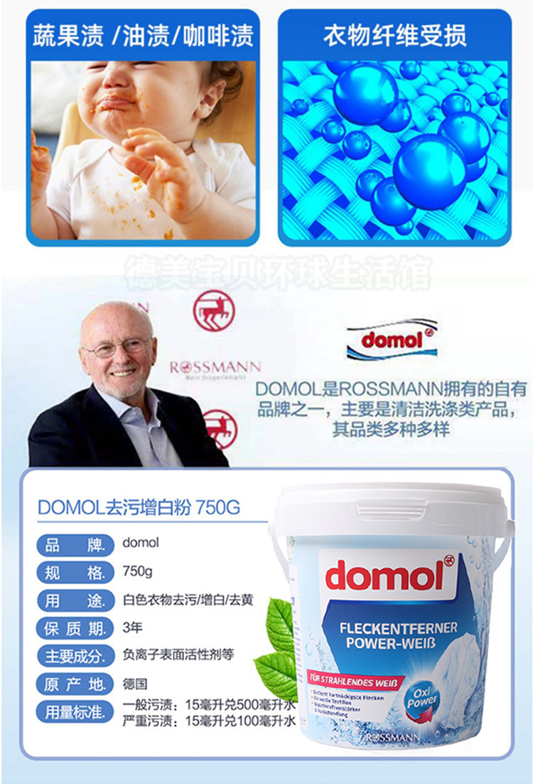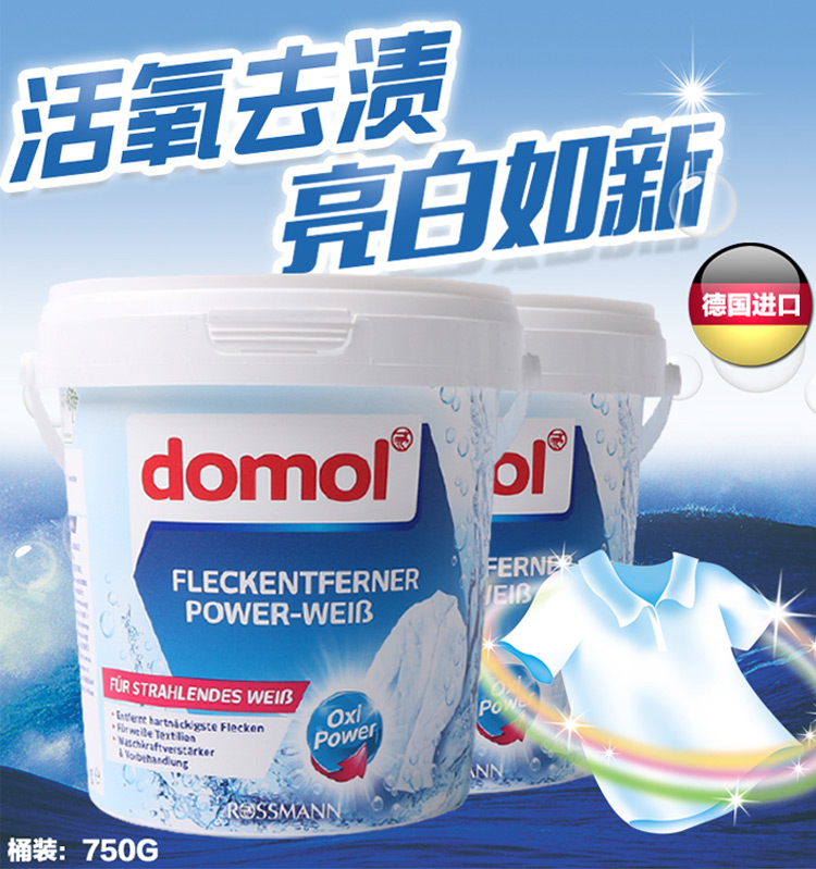 【中欧班列2桶】德国进口 ROSSMANN/domol 去渍增白粉/彩漂粉 去污漂白剂去黄洗衣粉 去渍洗衣护色增艳衣领净浓缩洗衣粉 衣领净清洁剂750g/桶