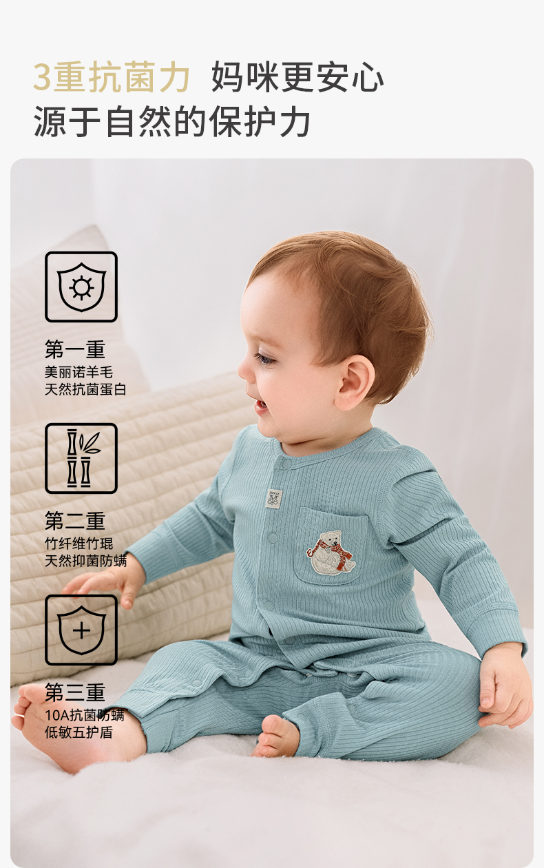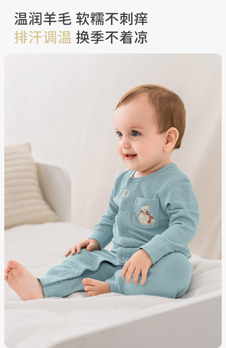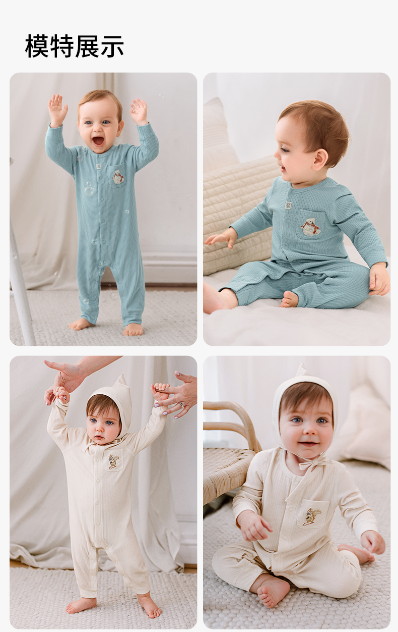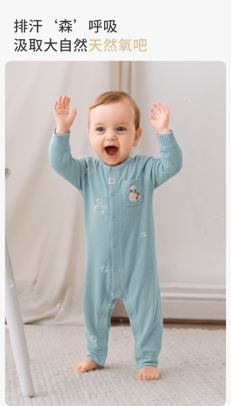 【宝宝服饰】嫚熙婴儿连体衣竹棉羊毛连身衣宝宝爬服哈衣