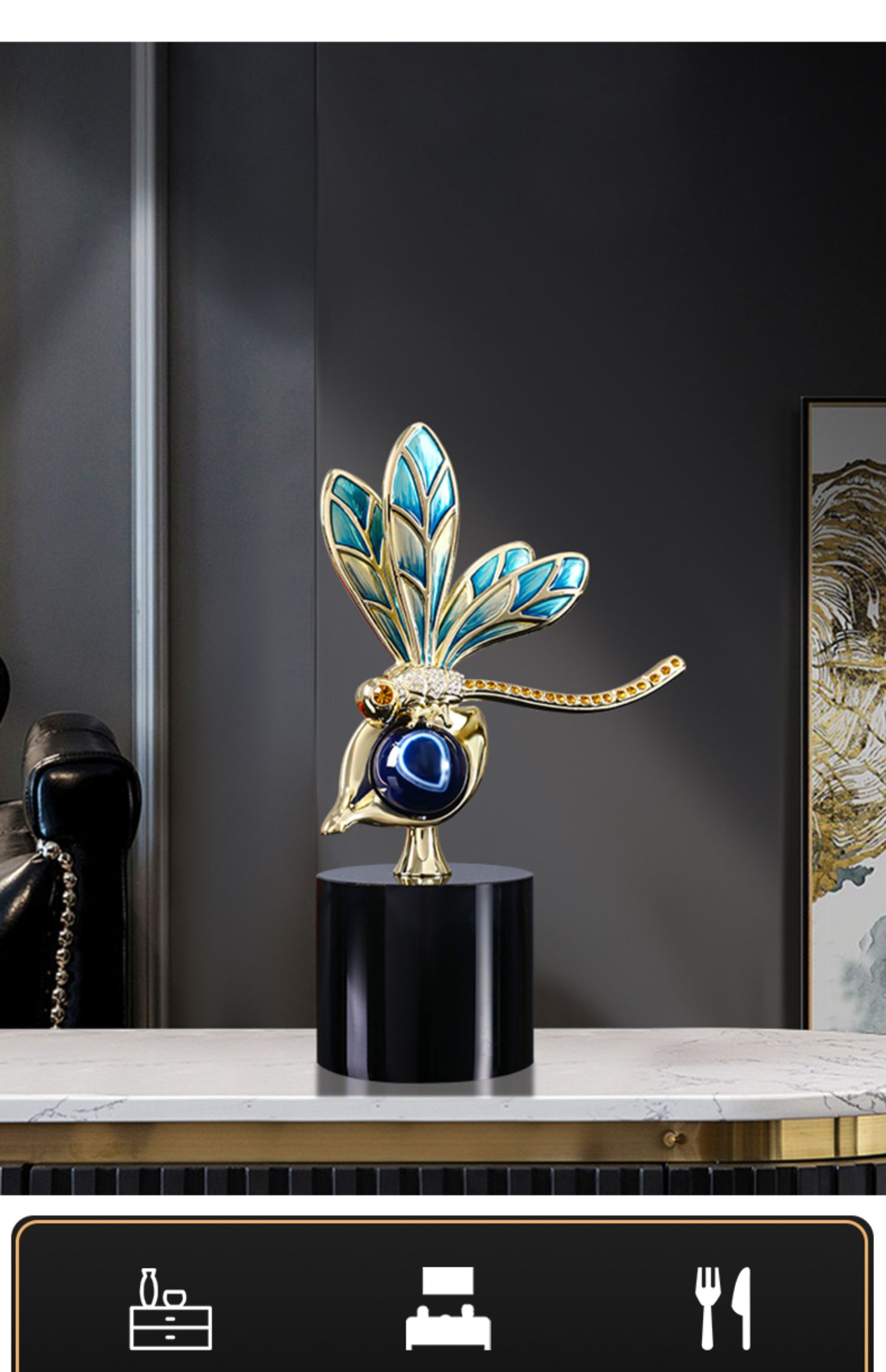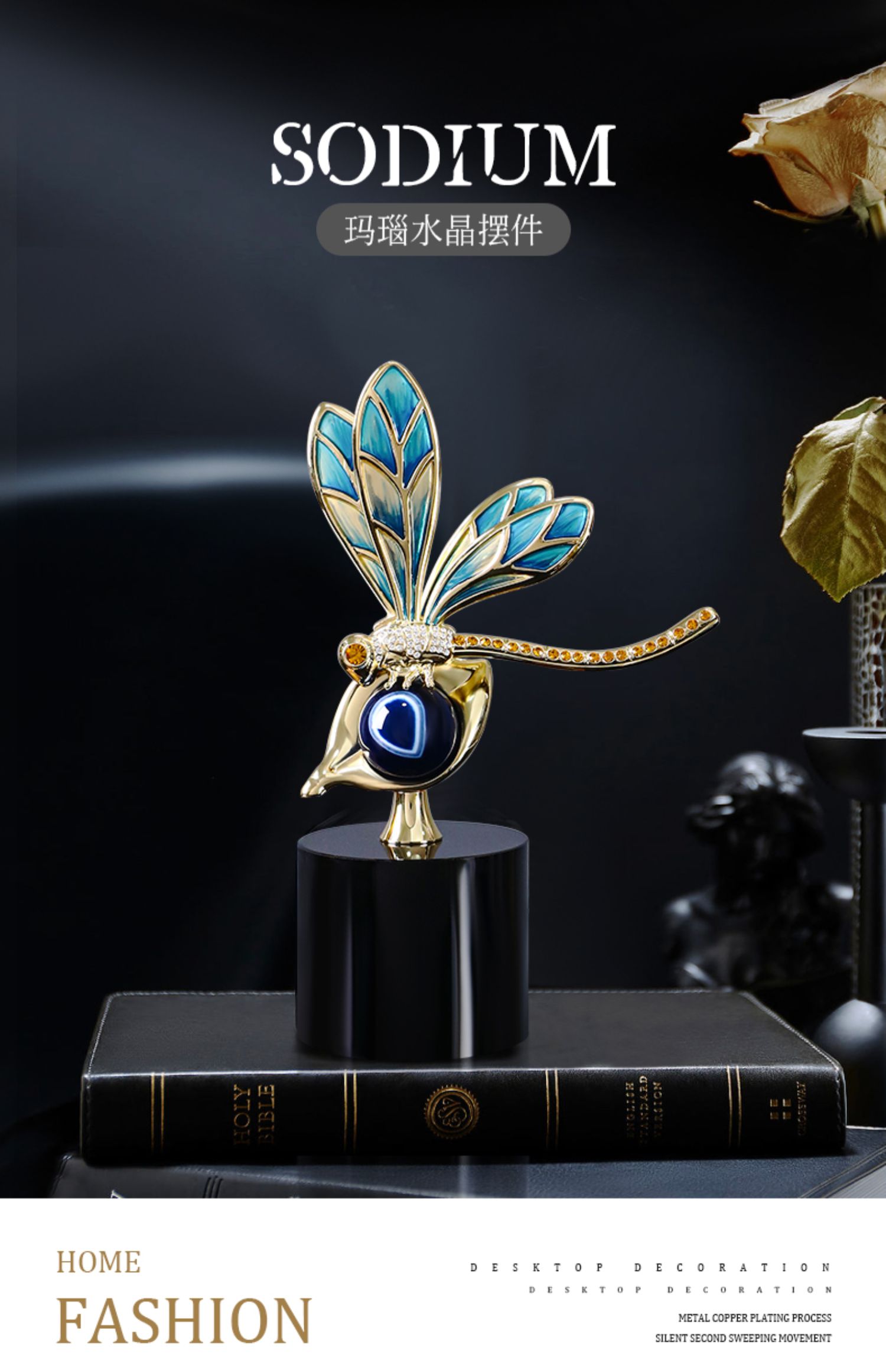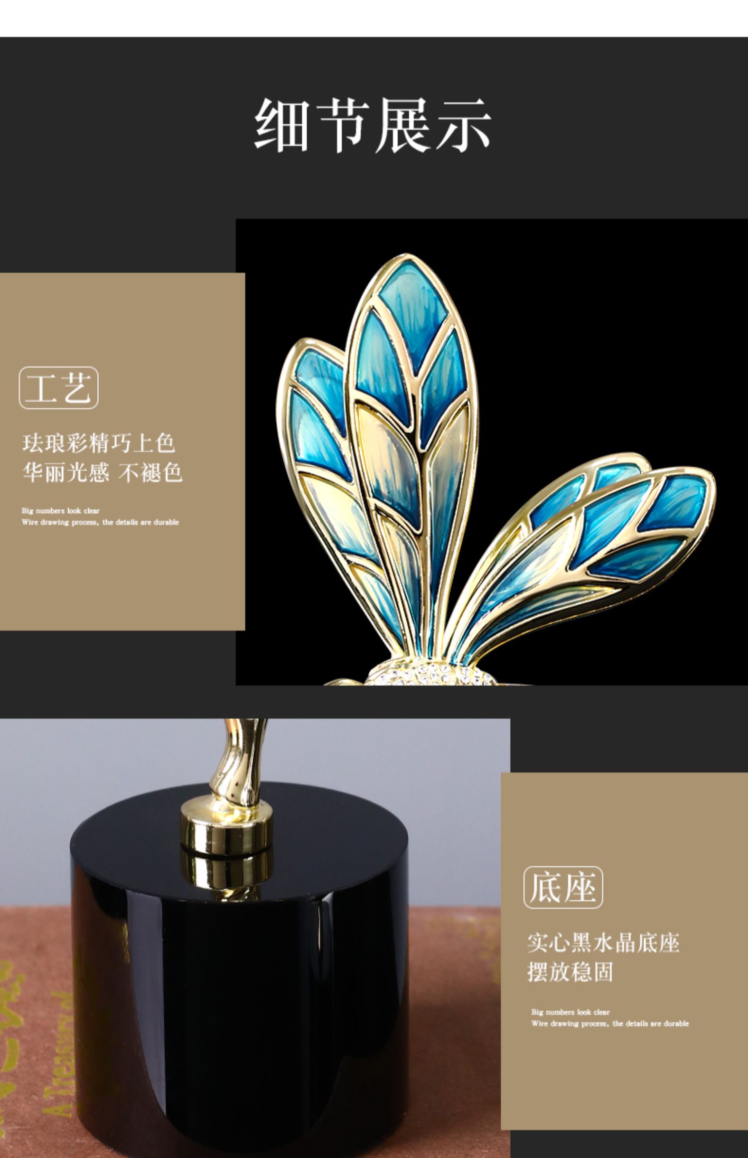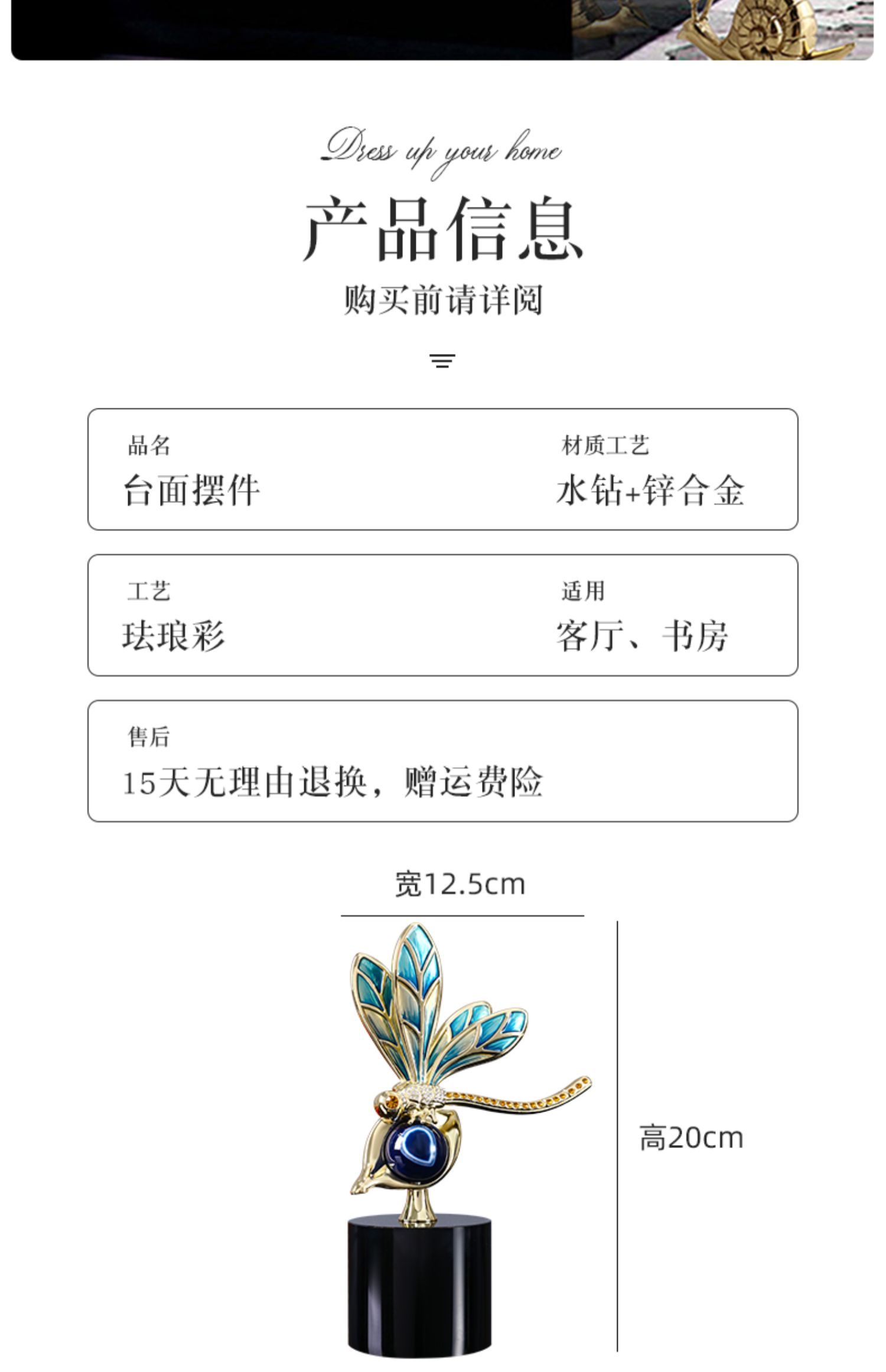 现代轻奢珐琅彩装饰蜻蜓摆件客厅家居饰品玄关酒柜电视柜创意礼品珐琅彩蜻蜓摆件