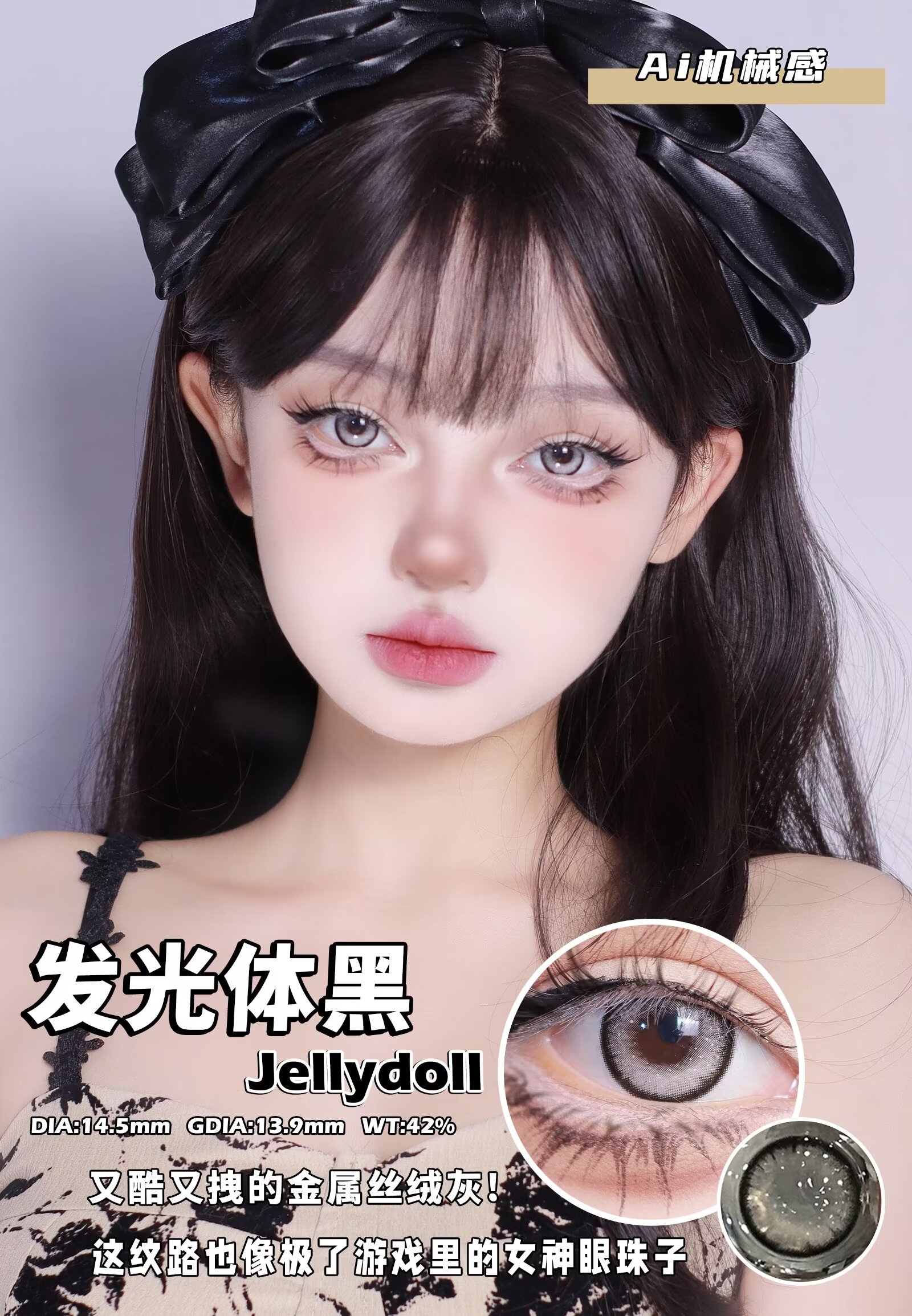Jellydoll 发光体黑 月抛 两片 14.5mm 参考着色 13.9mm 基弧 8.6 含水 42% 新锐国货