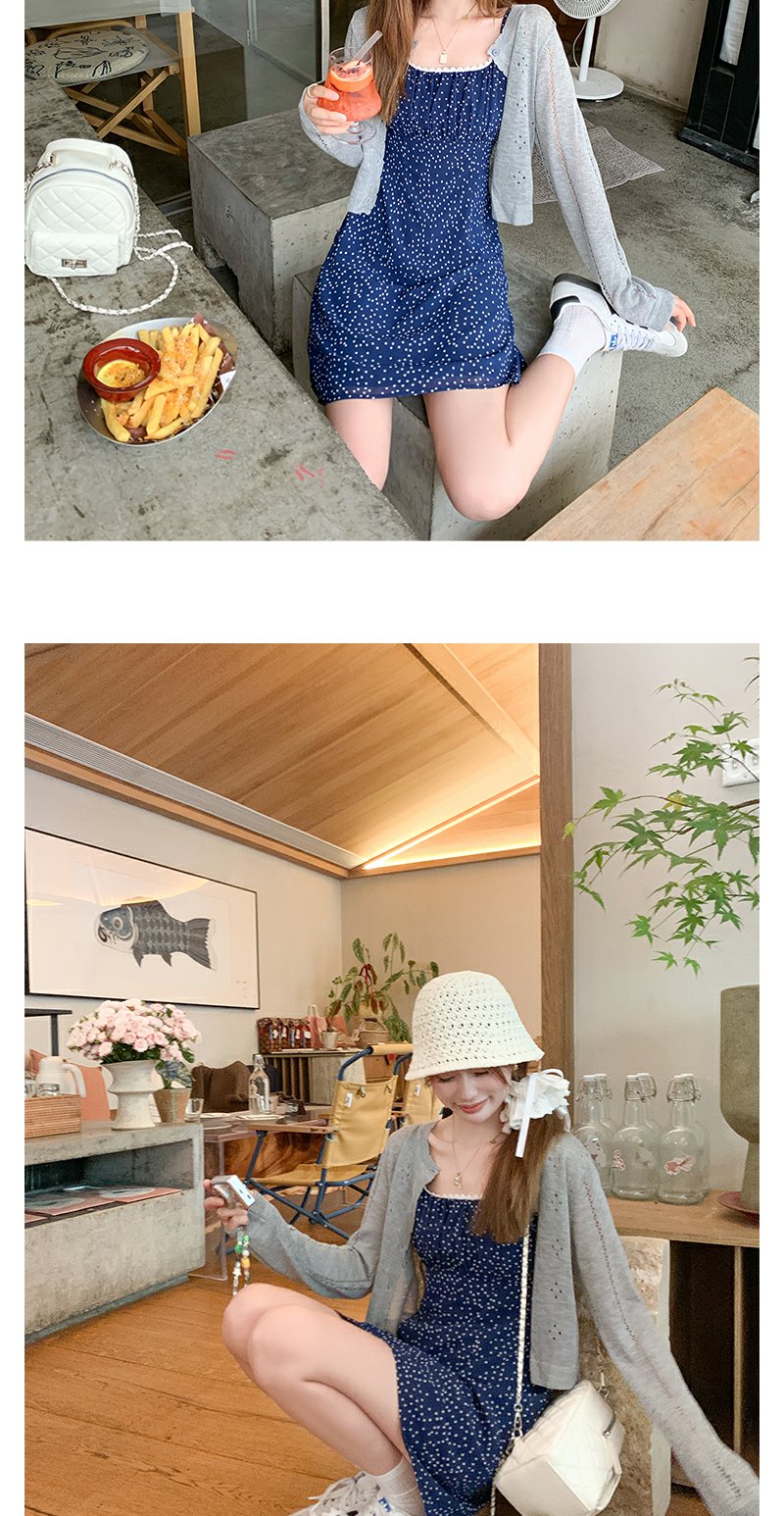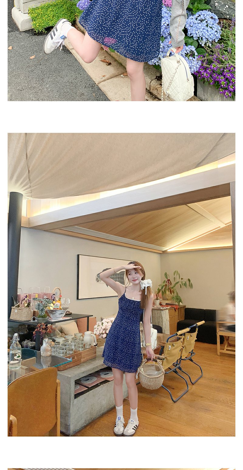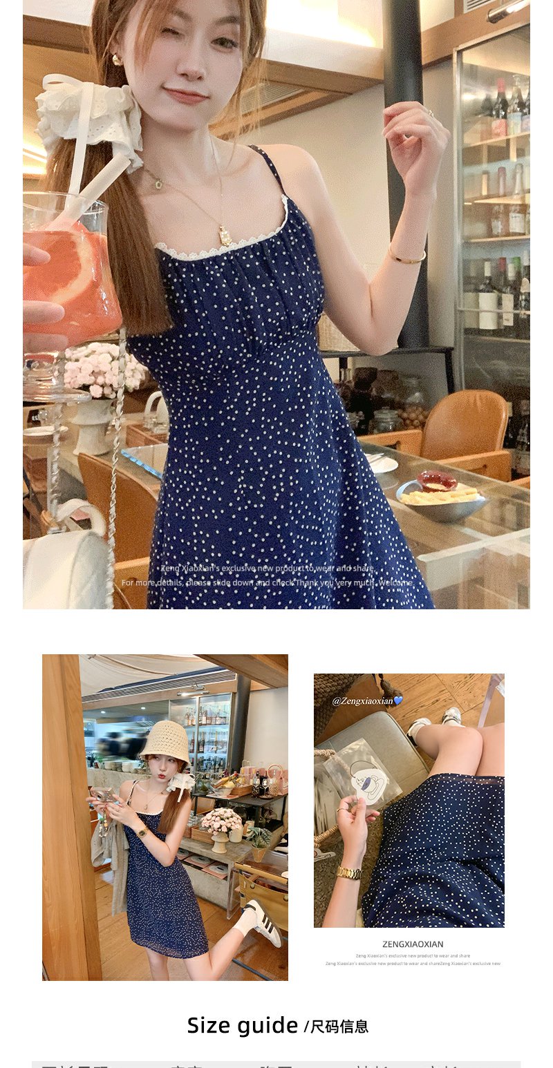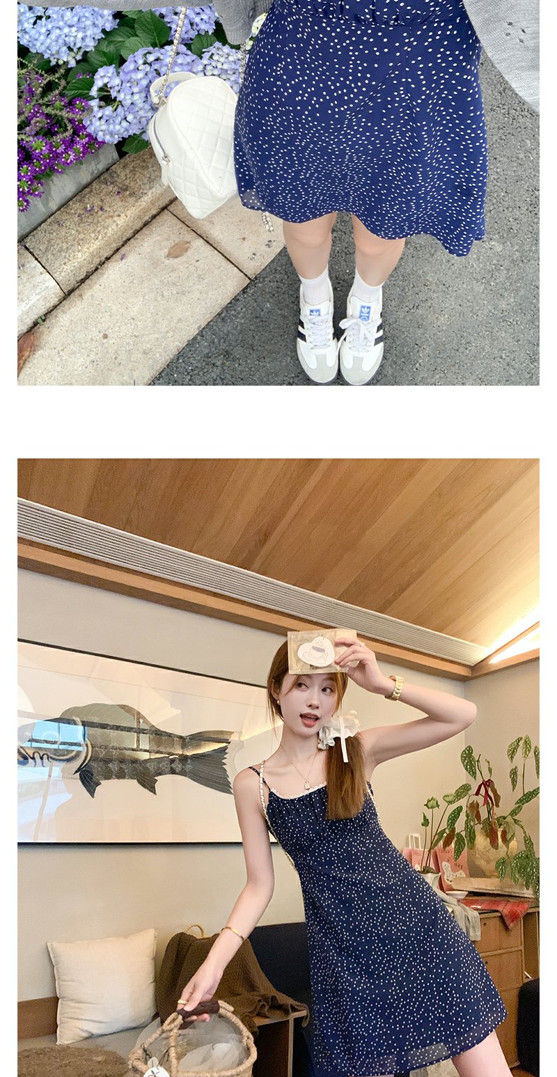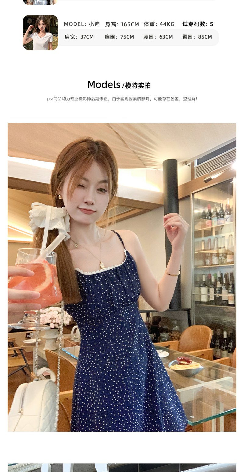 <曾小咸推荐>法式纯欲波点蓝色吊带连衣裙