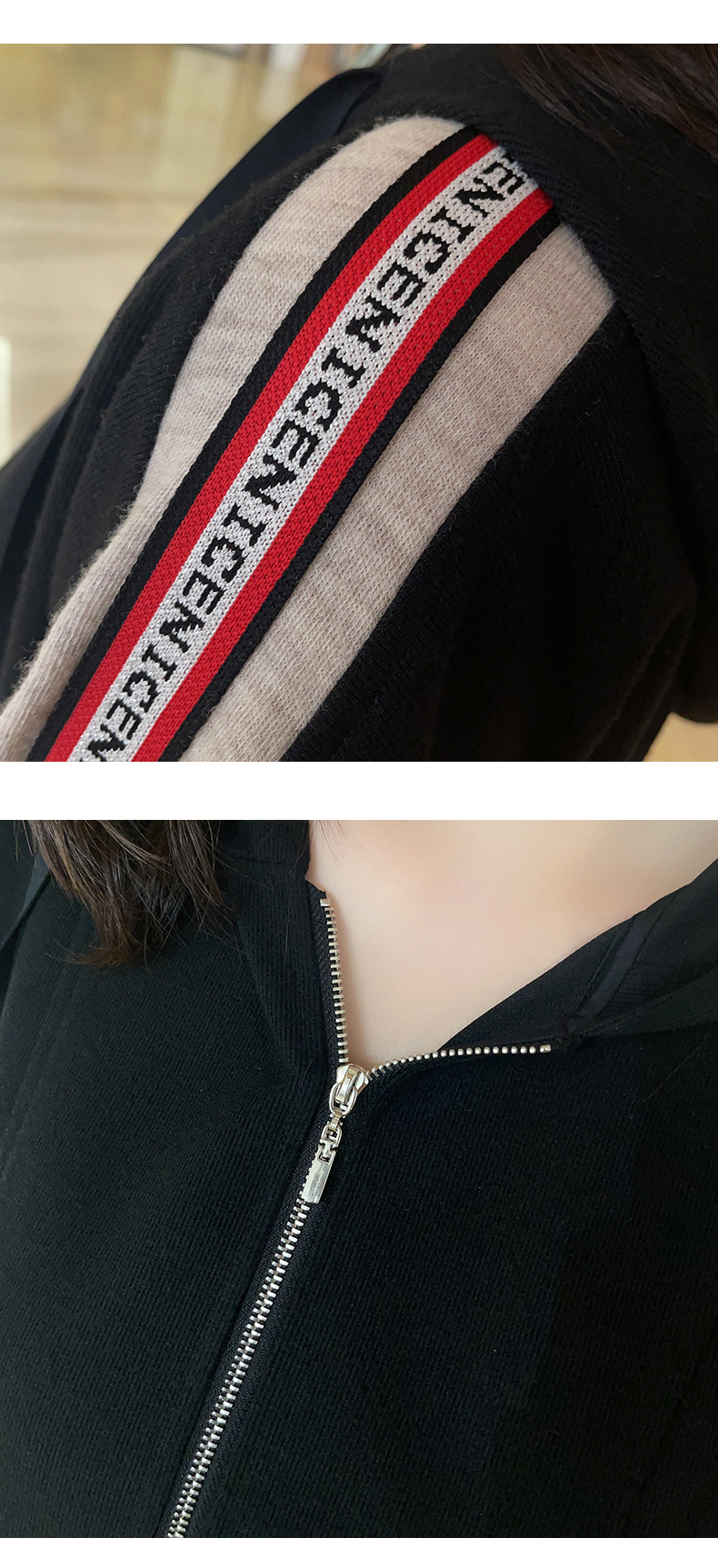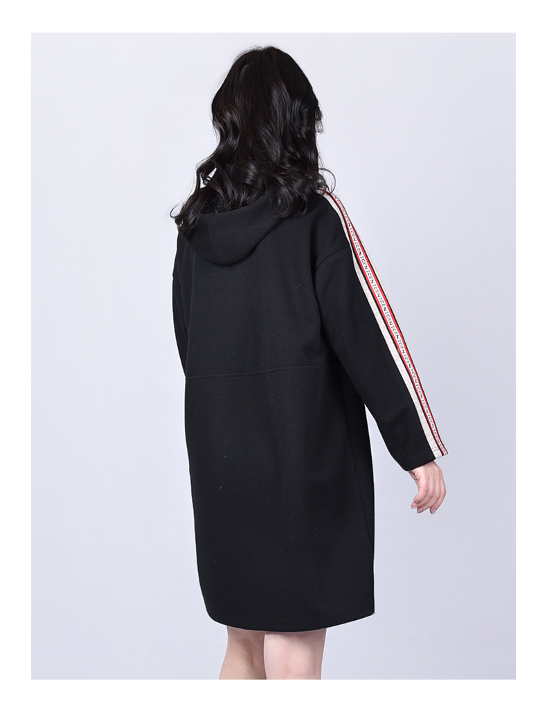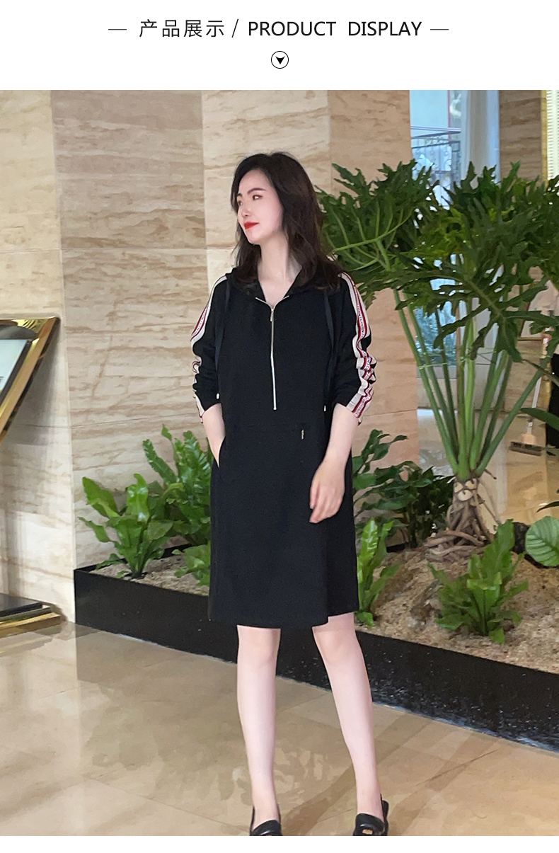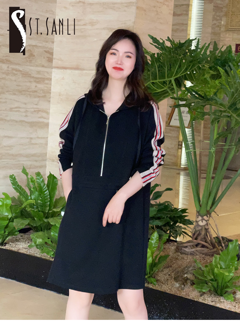 圣三利女装春秋季中长款运动休闲连帽连衣裙SL121L16