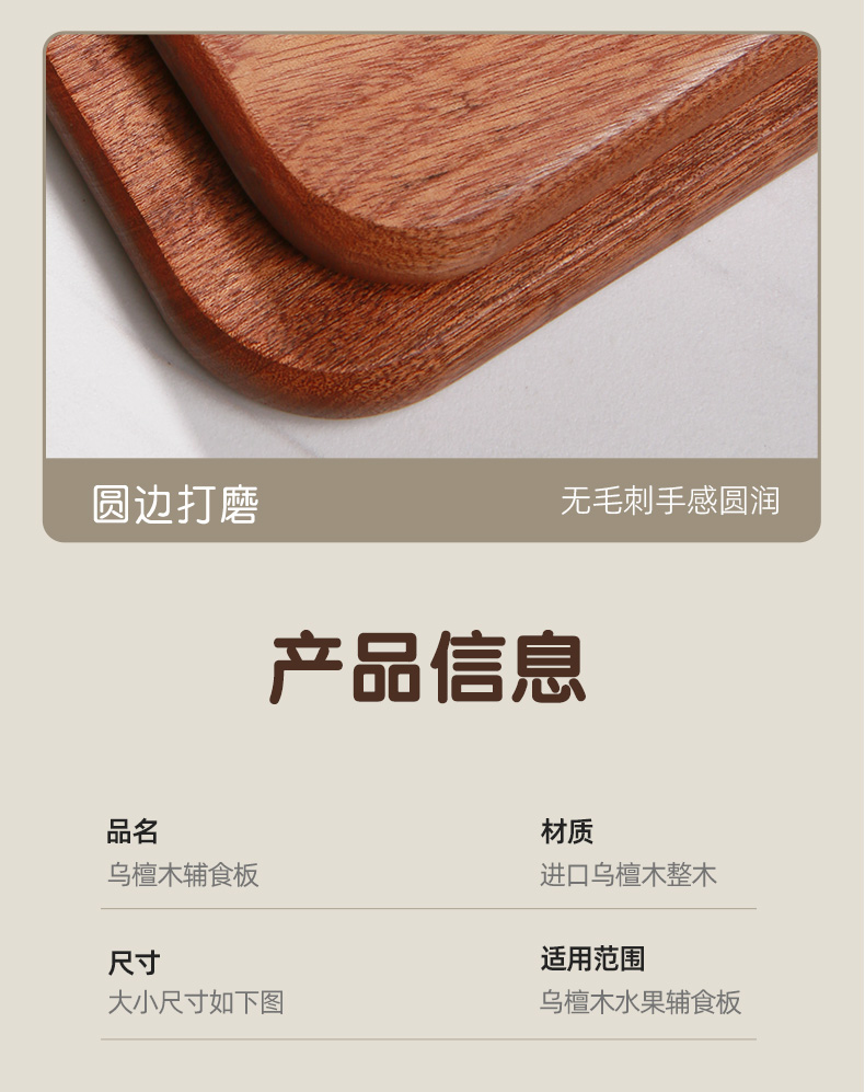 【无漆无蜡乌檀木】原森太乌檀木整木水果砧板实木小菜板防霉抗菌家用婴儿辅食案板