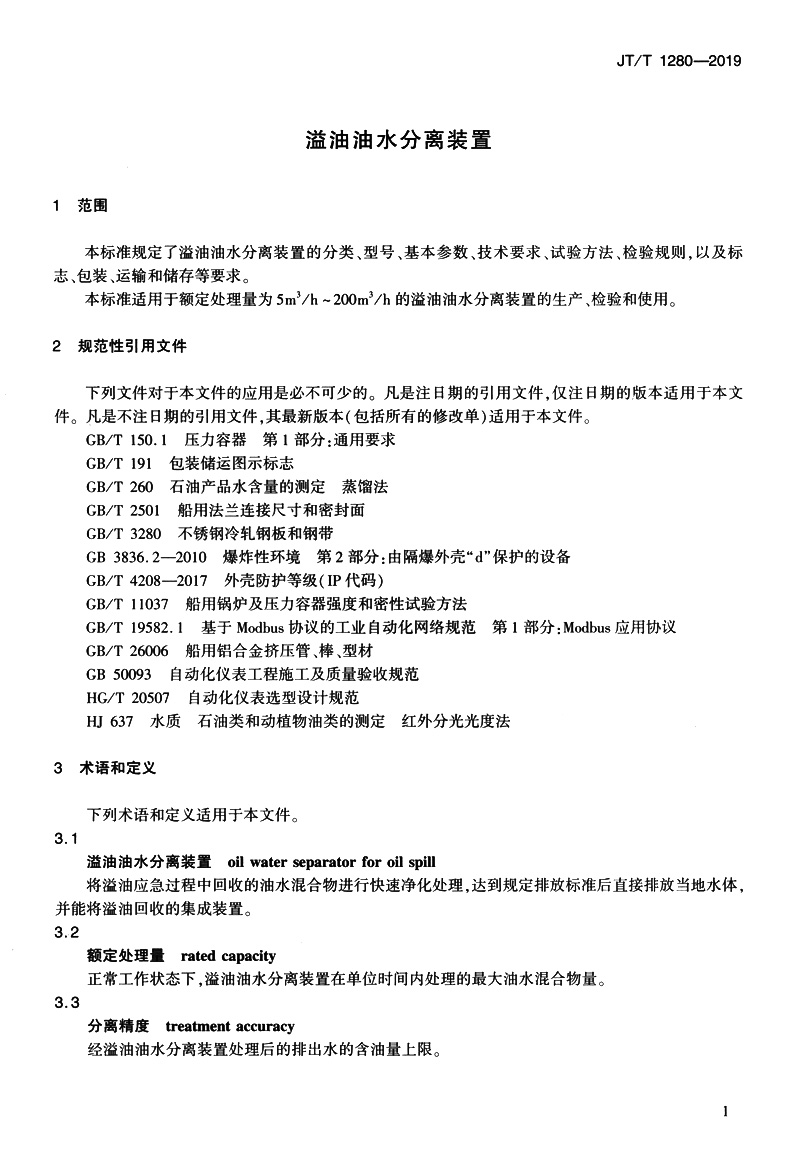 书名:溢油油水分离装置(JT/T 1280—2019)