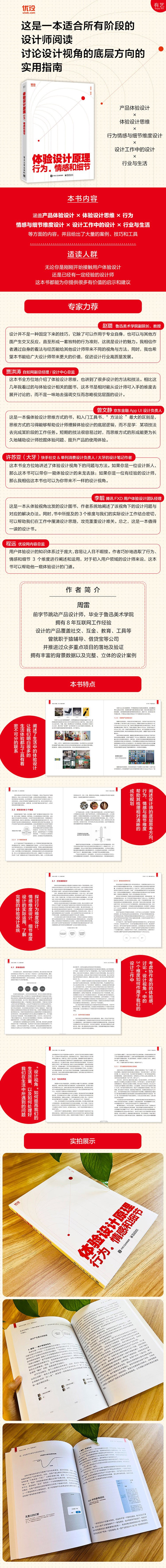本书基于体验视角,为设计师提供了一套思考逻辑和设计思路。在产品设计中,有3 个必不可少的维度:行为、情感、细节。行为维度主要作用于产品的使用层面,考虑的是如何让产品的使用更加轻松、高效和符合预期;情感维度是对用户心理层面的考量,设计要能关注到用户的情绪,产品也应该有自身的性格,另外要找到连接产品与用户的纽带;细节维度存在于行为维度和情感维度之中,同时又决定了两者的完善程度。3 个维度共同组成了一套完整的体验设计系统。这套设计系统不仅可以用于产品设计中,还对工作协同和生活中的体验起着到关重要的作用。