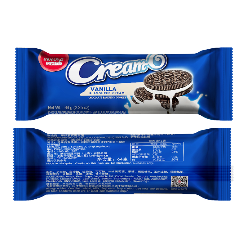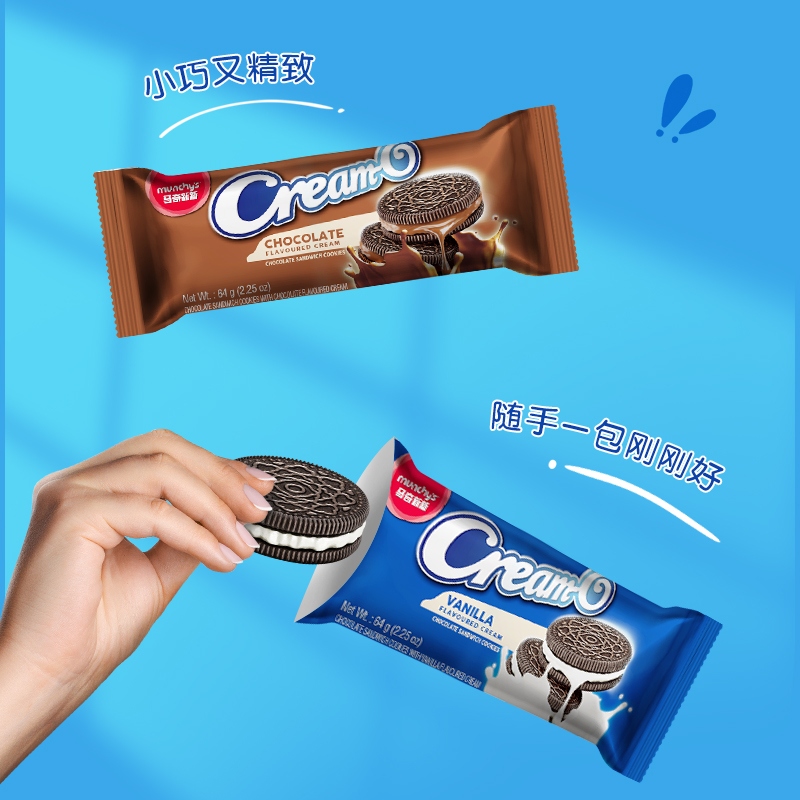 马奇新新夹心曲奇饼干(香草味+巧克力味)64g*18袋