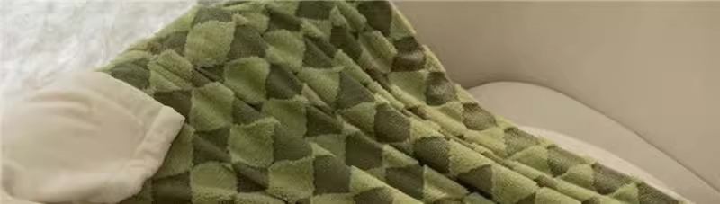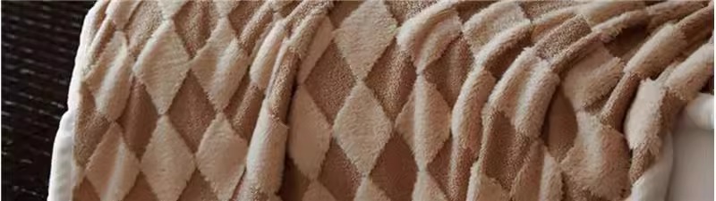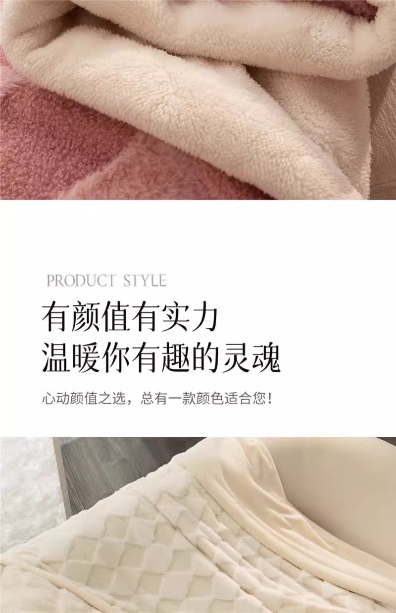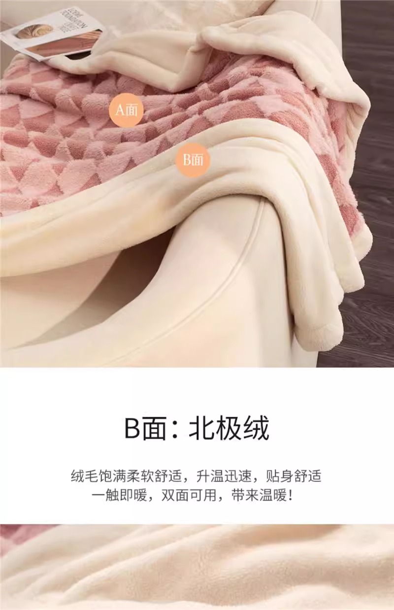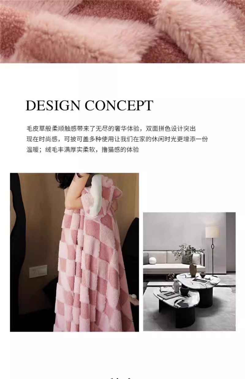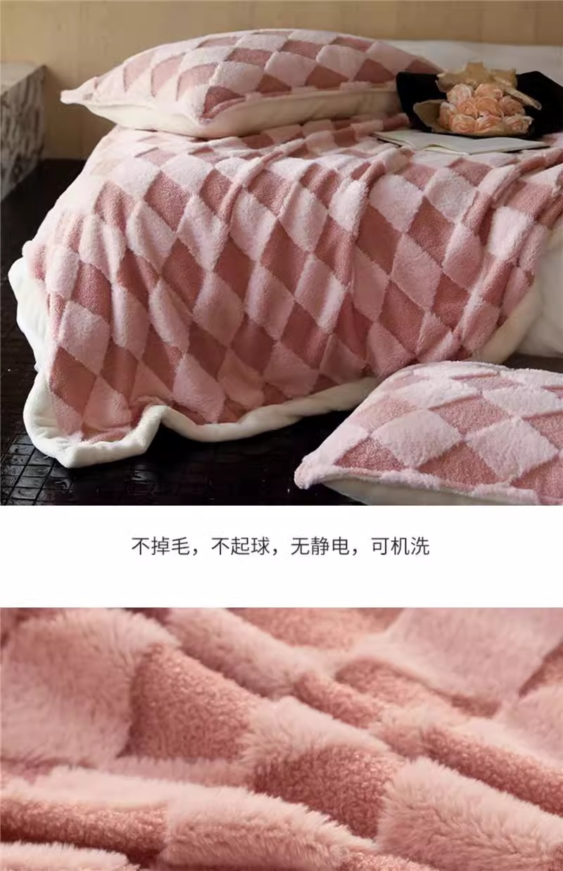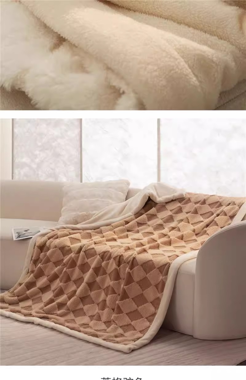 自然醒ins兔毛菱形格交织立体提花双层加厚可机洗毛毯沙发休闲膝盖毯双人卧室毯子MT