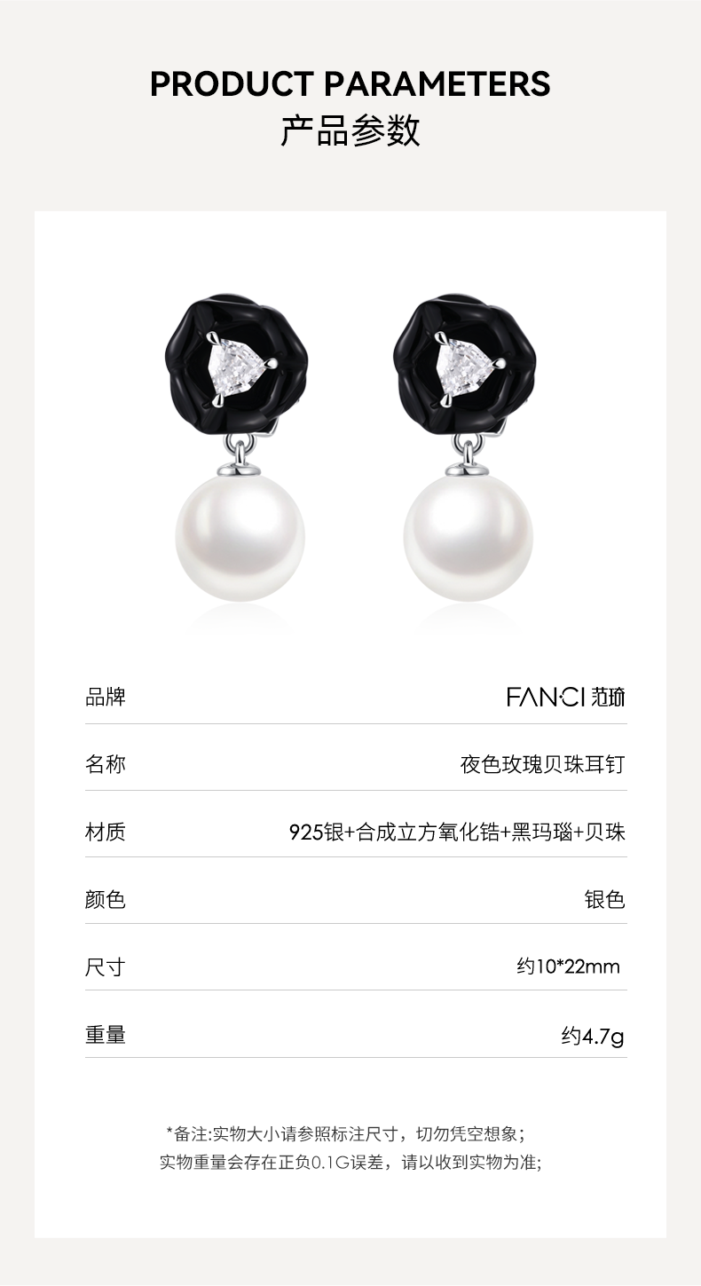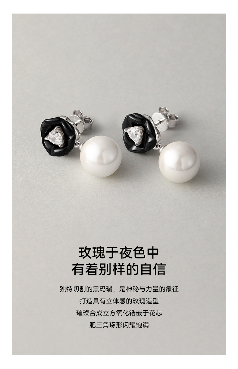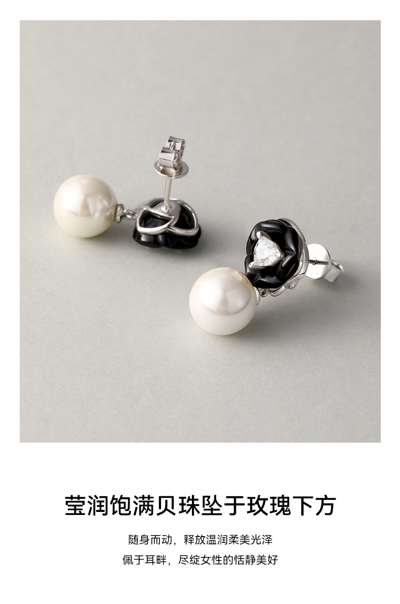 耳钉合集【茶色玫瑰】【夜色玫瑰】贝珠耳钉