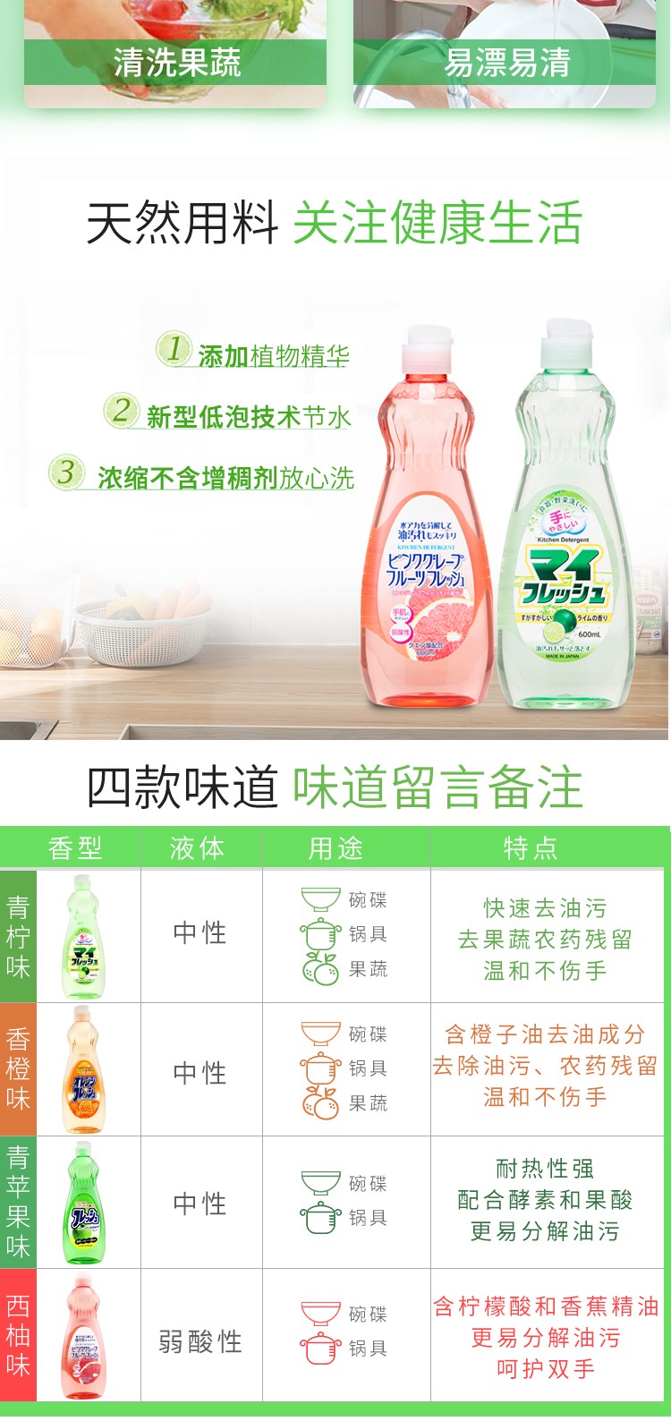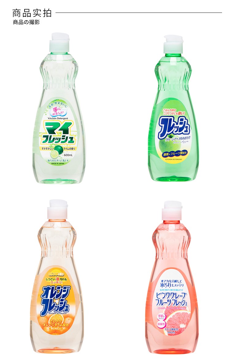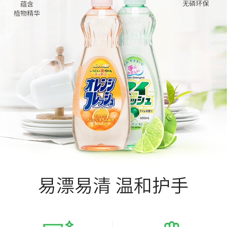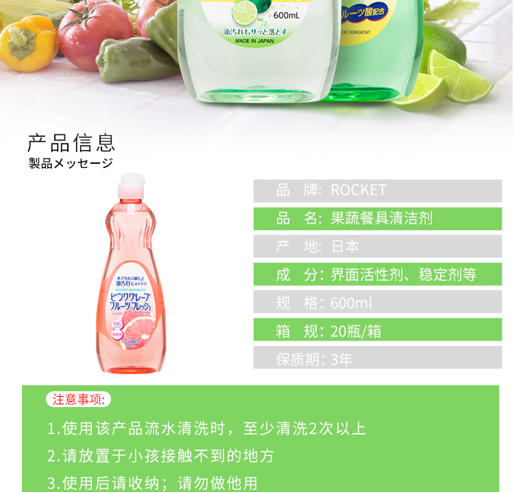 【3瓶装】ROCKET火箭石碱果蔬餐具清洁剂去油污洗洁精600ml/瓶(青柠香/香橙味/西柚香/苹果香)