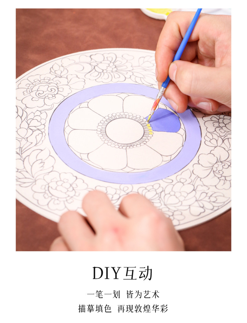 敦煌研究院【敦煌图案填色团扇】汉服流苏小圆扇博物馆文创礼品