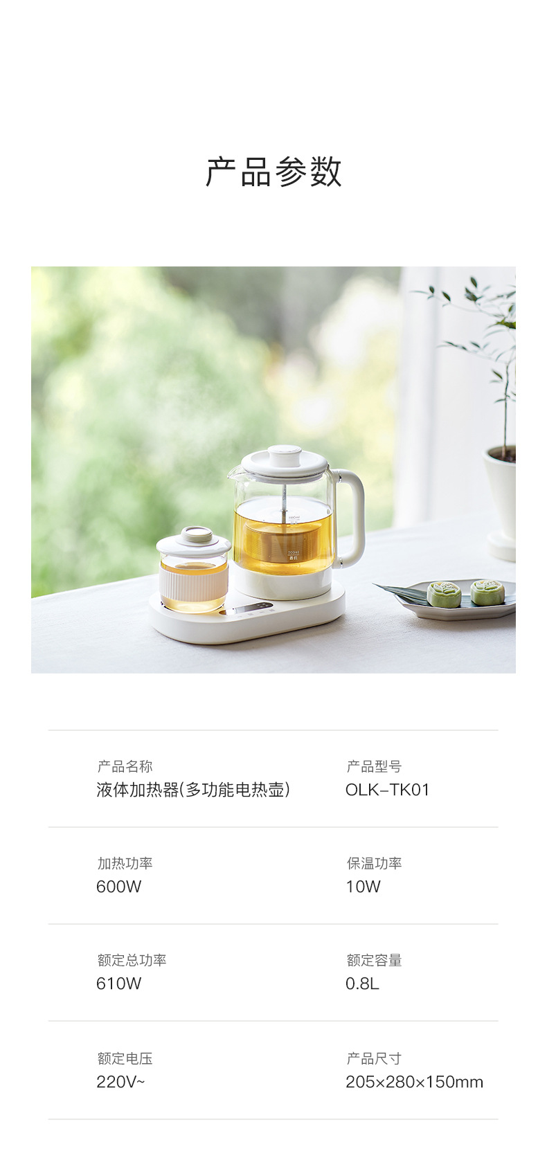 olayks欧莱克养生壶小型办公室恒温家用多功能玻璃烧水壶煮茶壶 心选到家