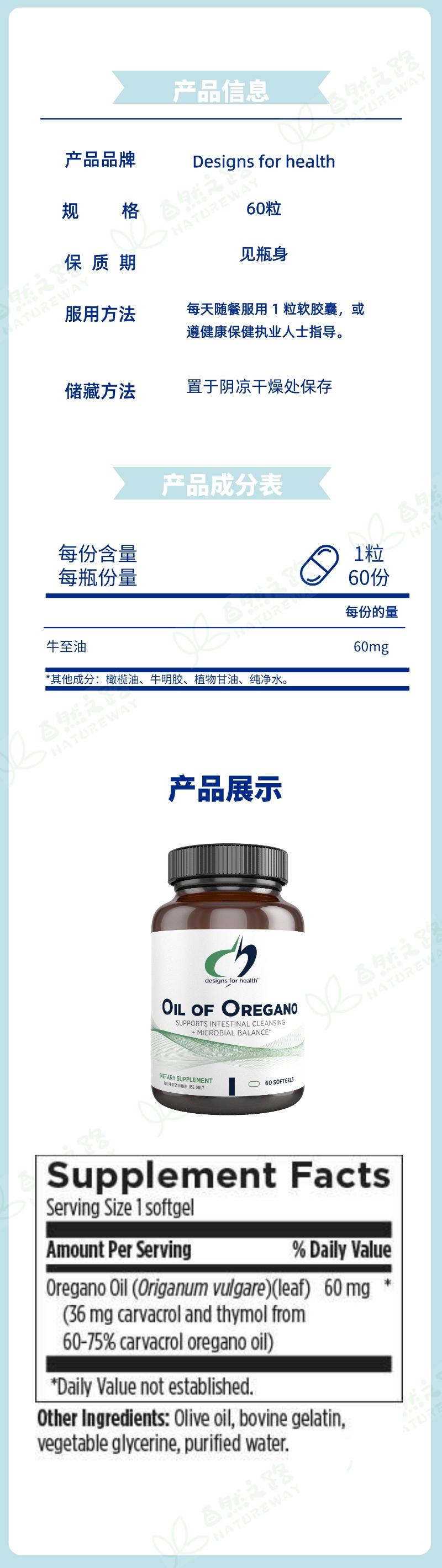 健康设计Designs for health牛至油Oil of Oregano 60粒 杀菌