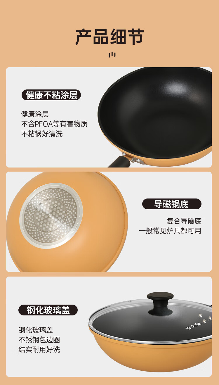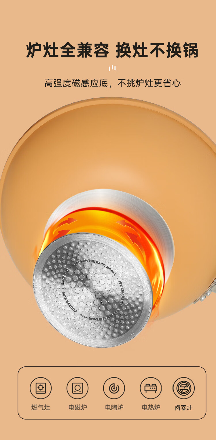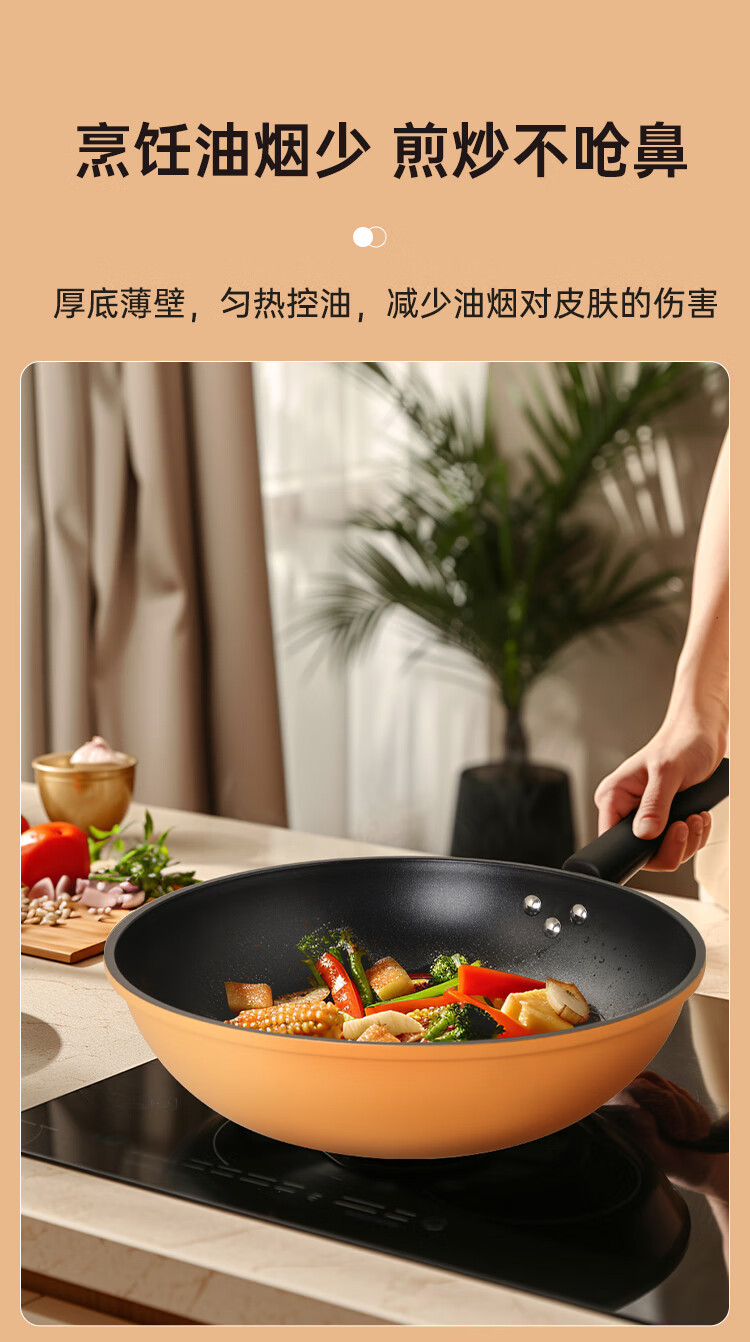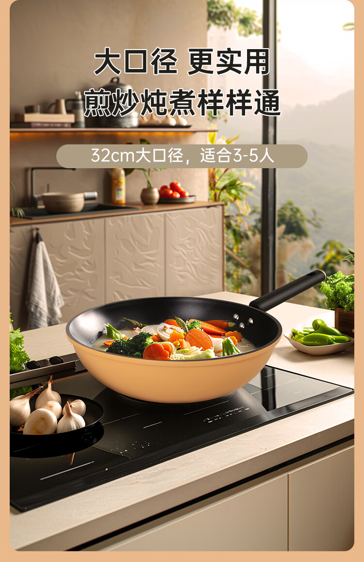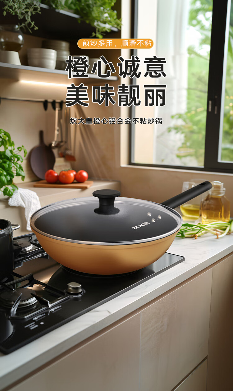 炊大皇 橙心铝合金不粘锅炒锅32cm CG32CX