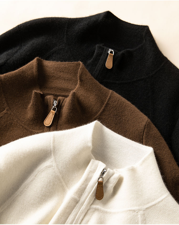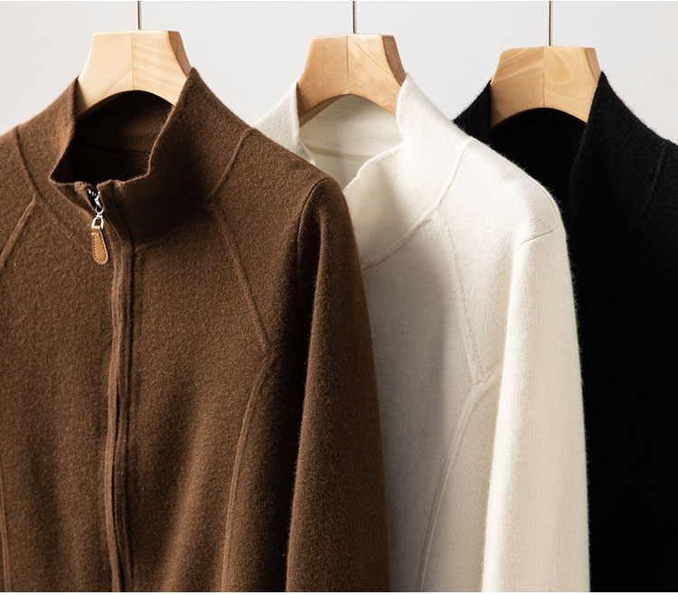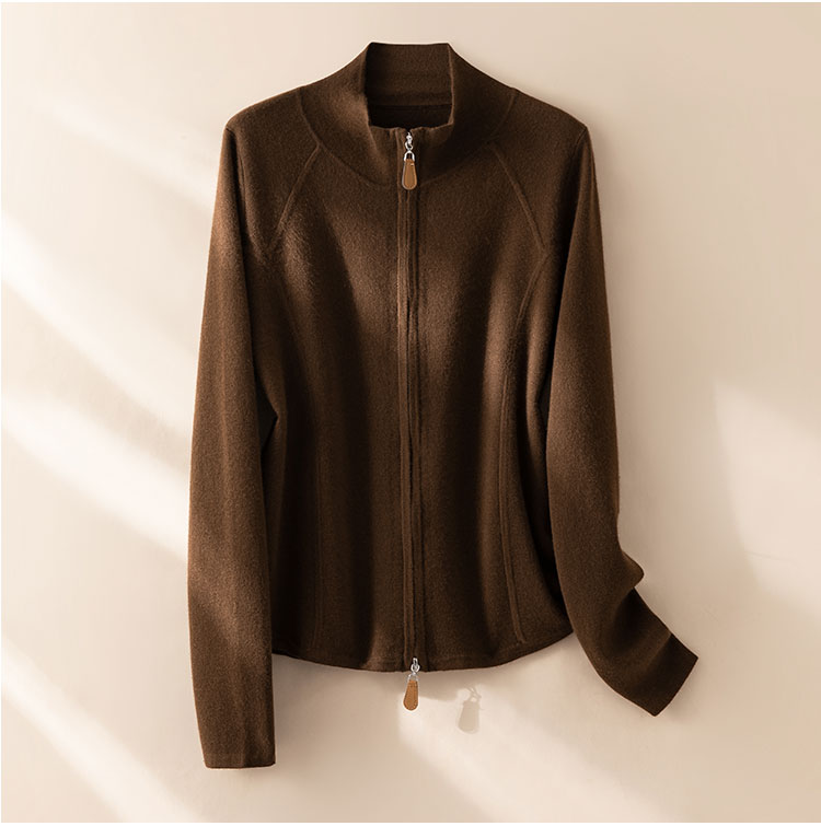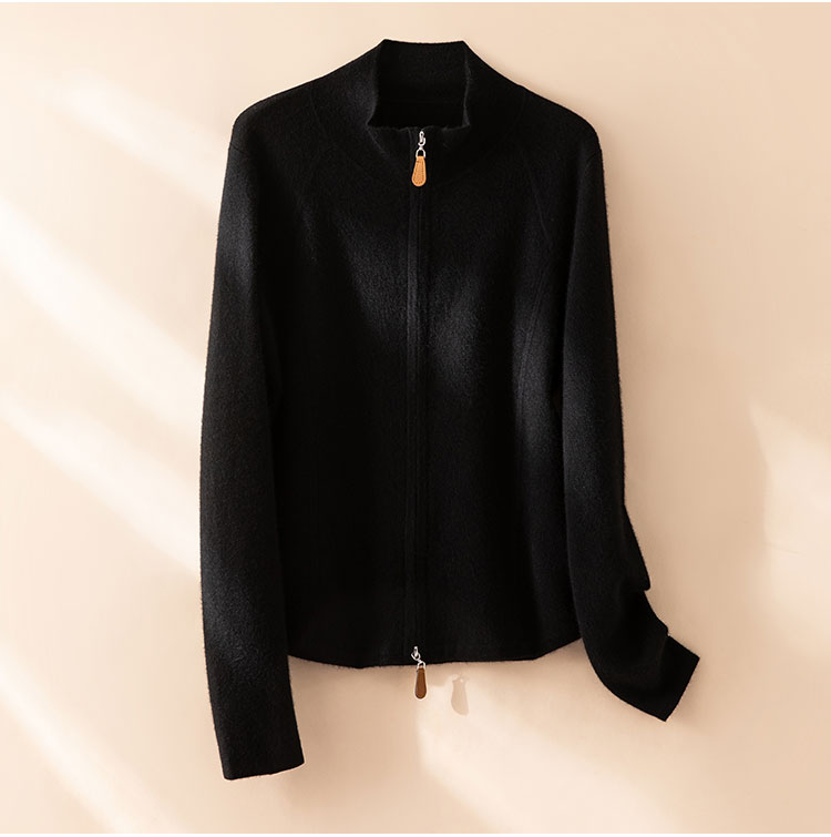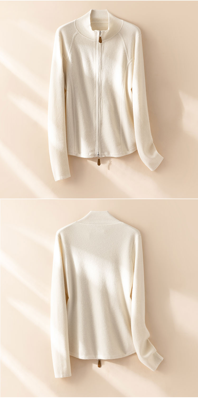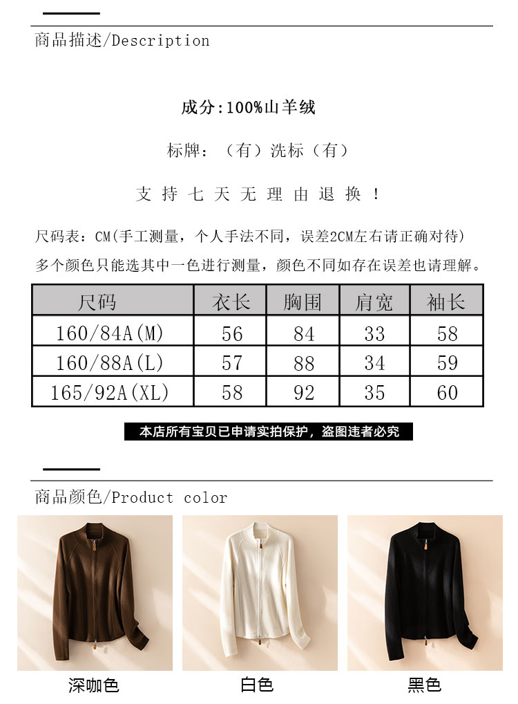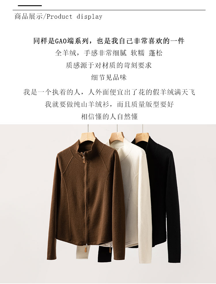 蚂蚁腰~100%超细精纺半高领加厚外套女双拉链开衫CYR260532