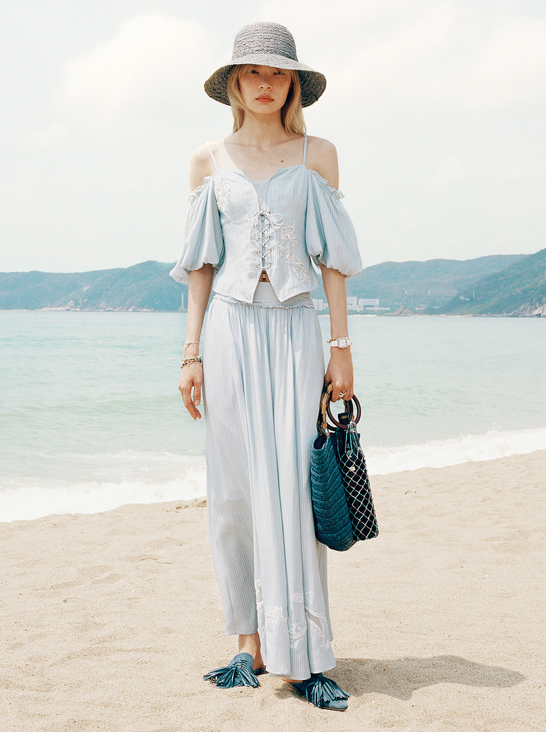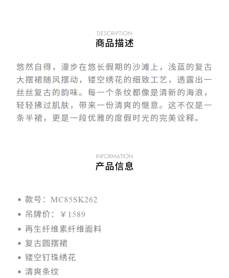 玛克门店发货:MAXRIENY*度假感镂空绣花半身裙长裙(货号:MC85SK262)
