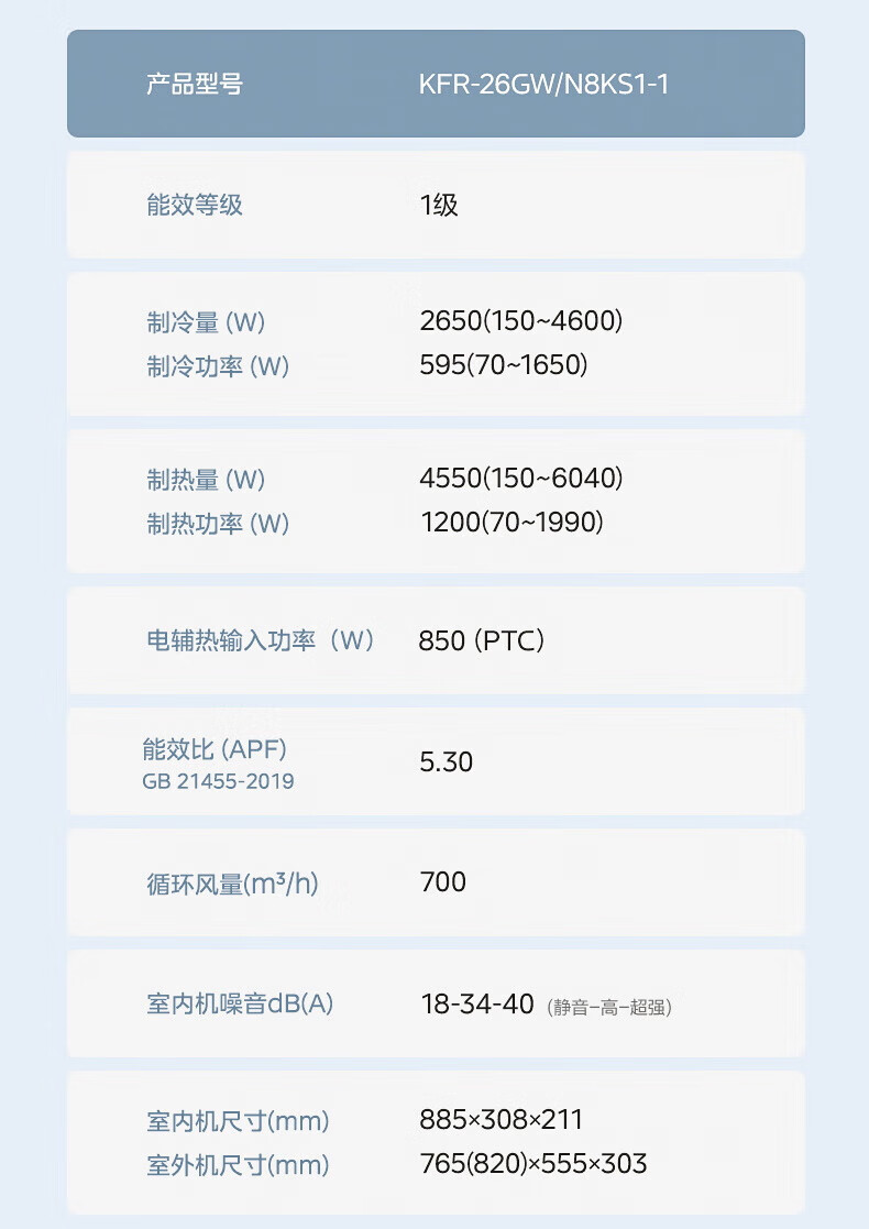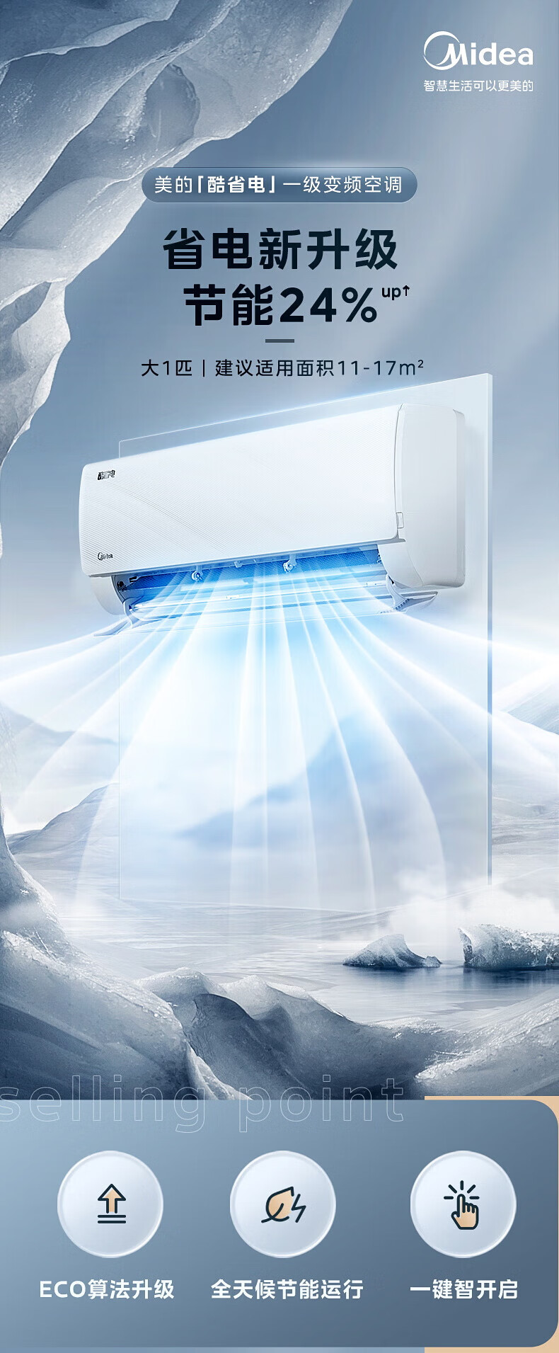 【仅供集采】美的(Midea)空调 大1匹 酷省电新一级能效变频冷暖自清洁家用壁挂式空调挂机智能家电 KFR-26GW/N8KS1-1