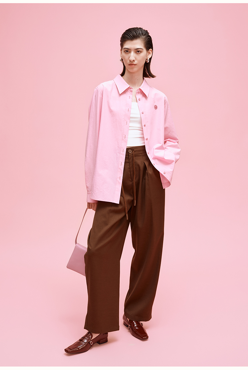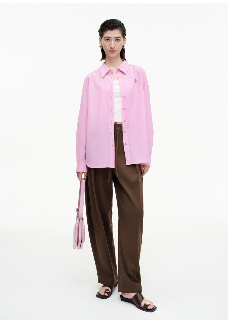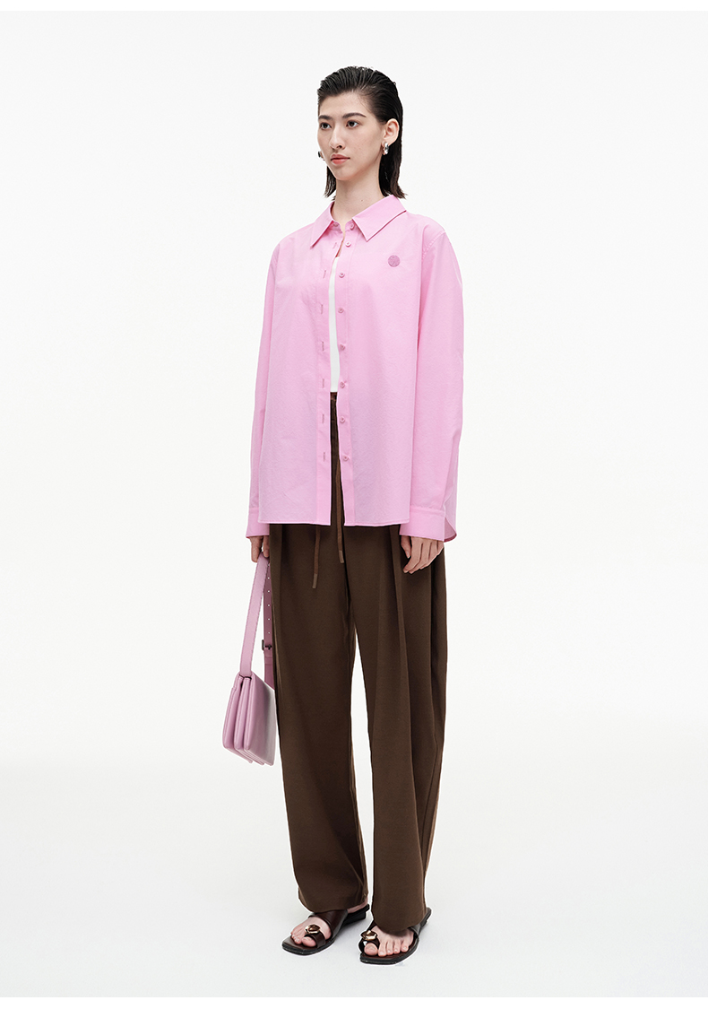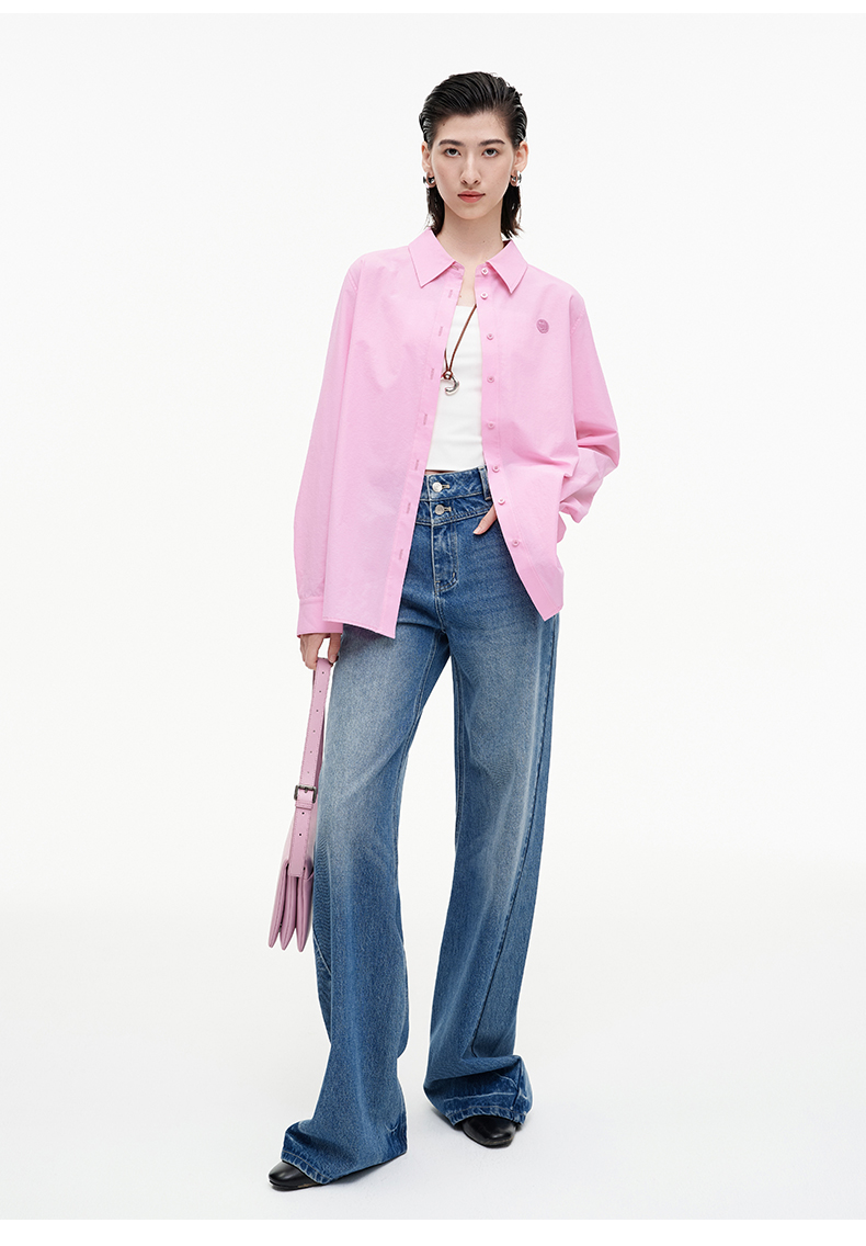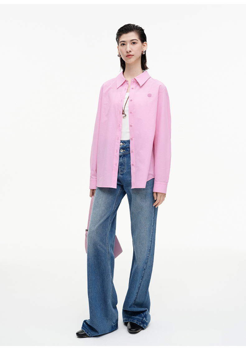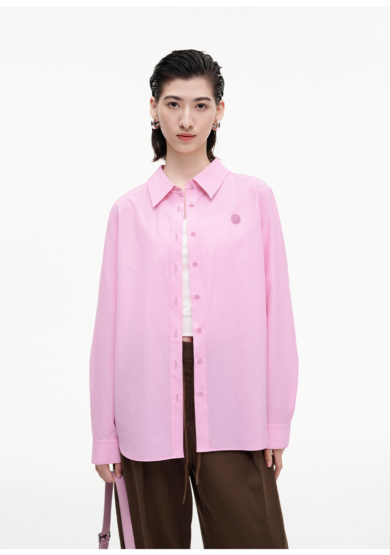 SELFWHO笑脸衣橱棉混纺通勤风气质衬衫女2025秋新款宽松落肩上衣