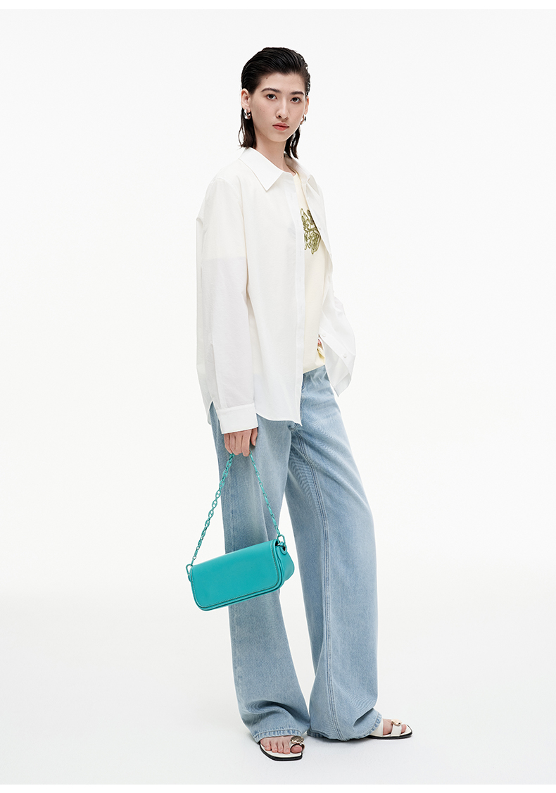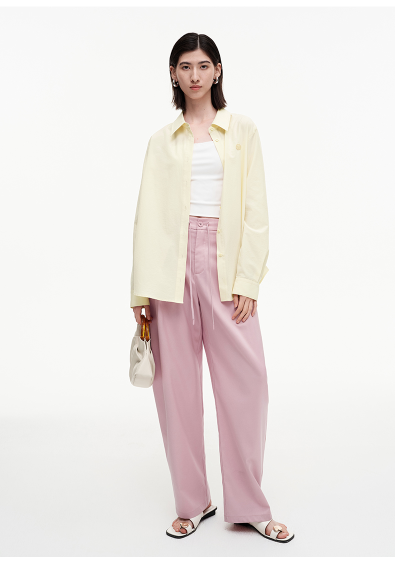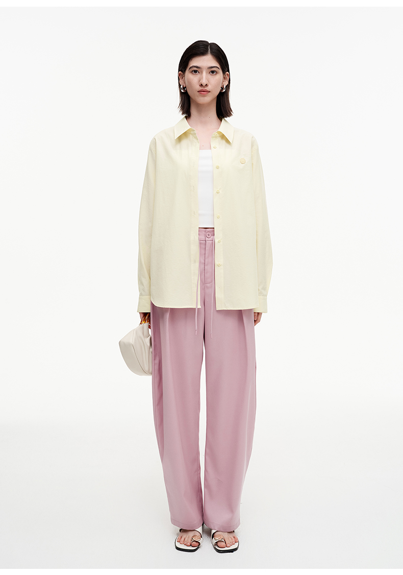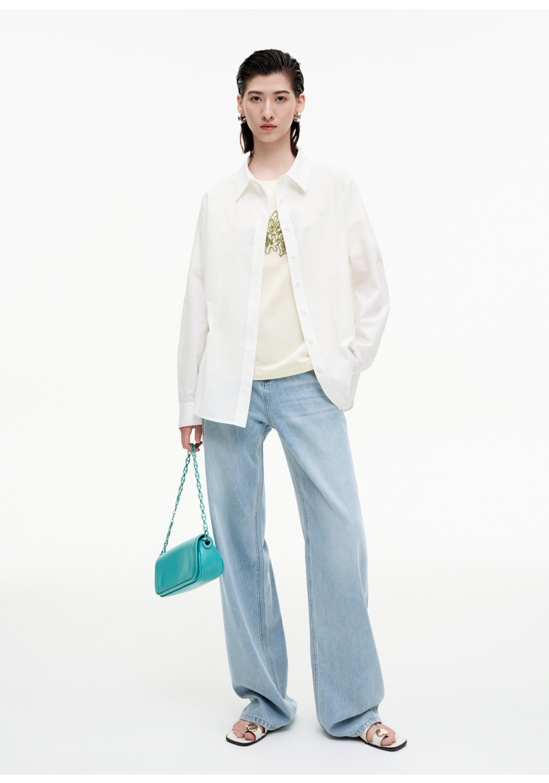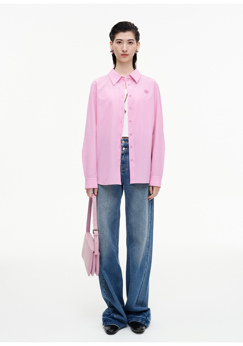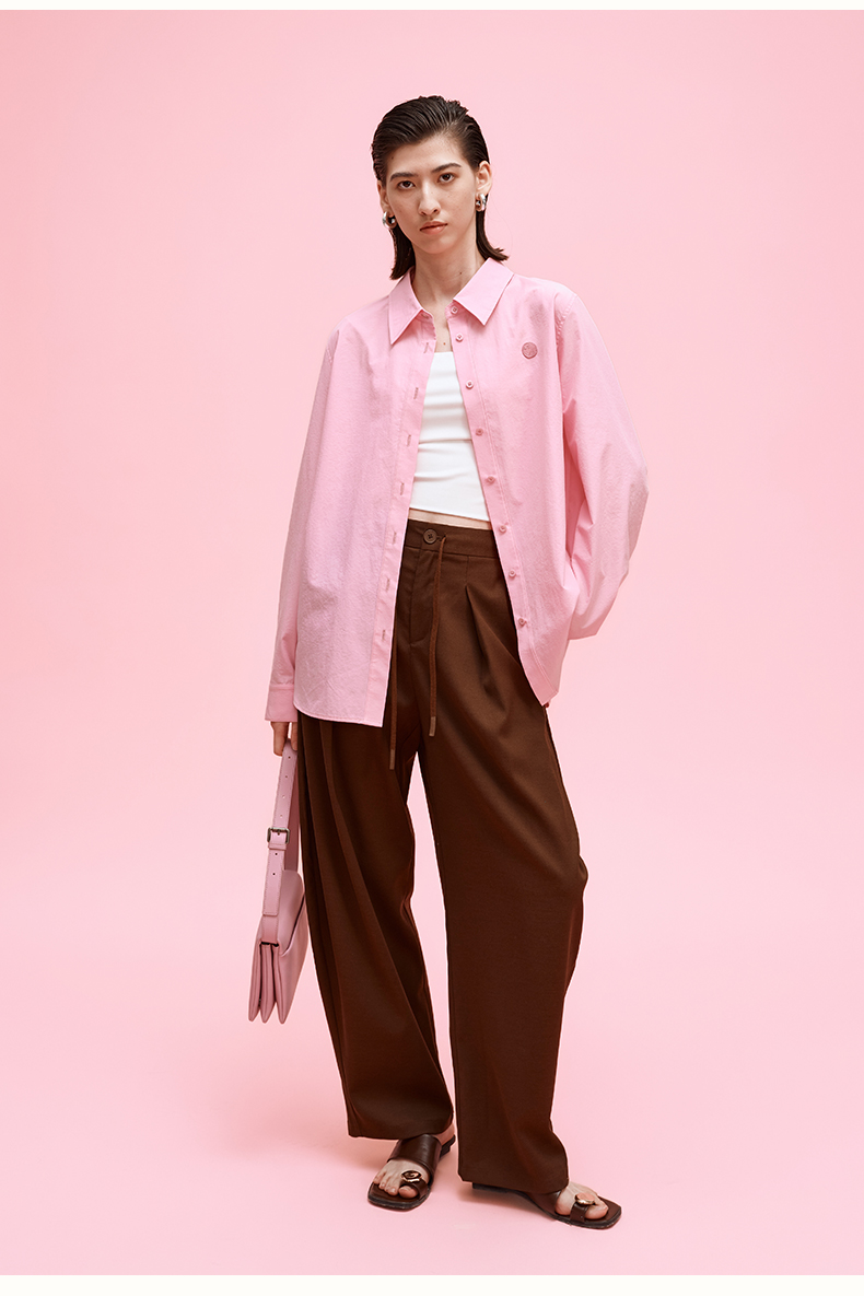SELFWHO笑脸衣橱棉混纺通勤风气质衬衫女2025秋新款宽松落肩上衣