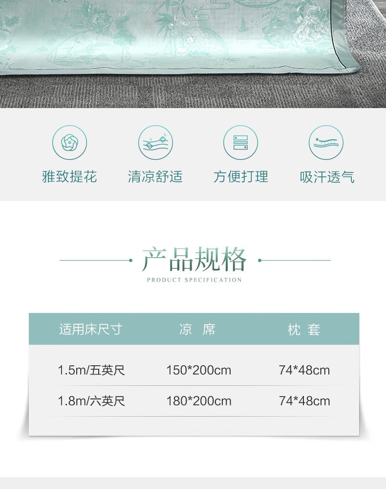 富安娜 高档冰丝提花席-竹梦轩150*200cm