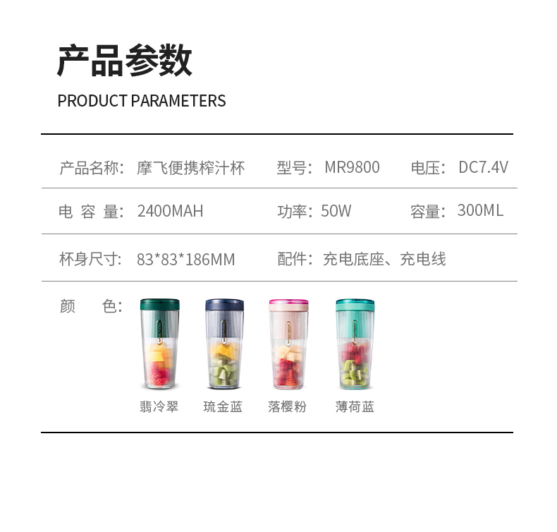 0.3L摩飞便携榨汁杯MR9800(粉)(次日起提配)