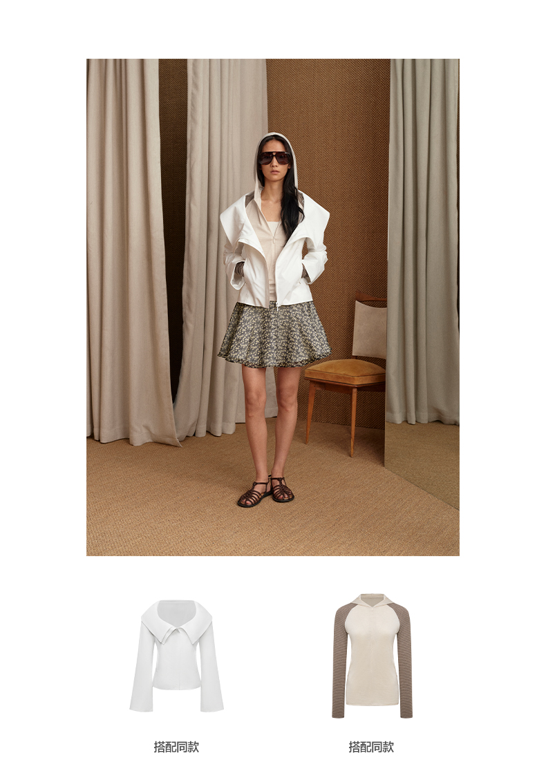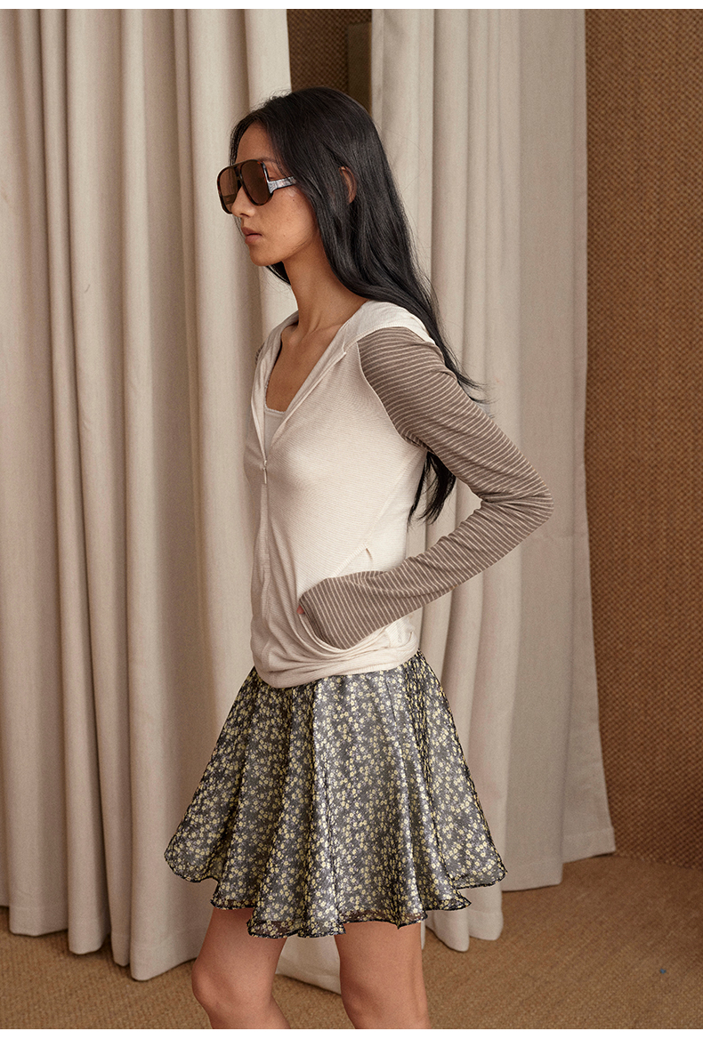 NUTH 撞色针织开衫领口连身假两件拼接设计修身毛衣针织衫