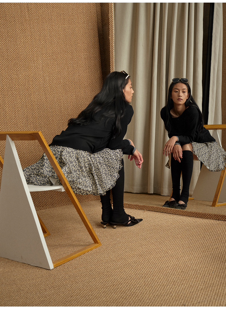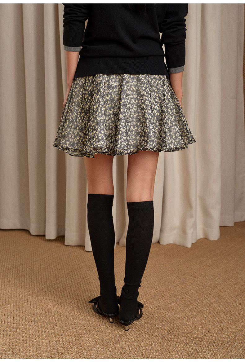 NUTH双层半透碎花a字短裙蓬松廓形泡泡裙/带安全裤