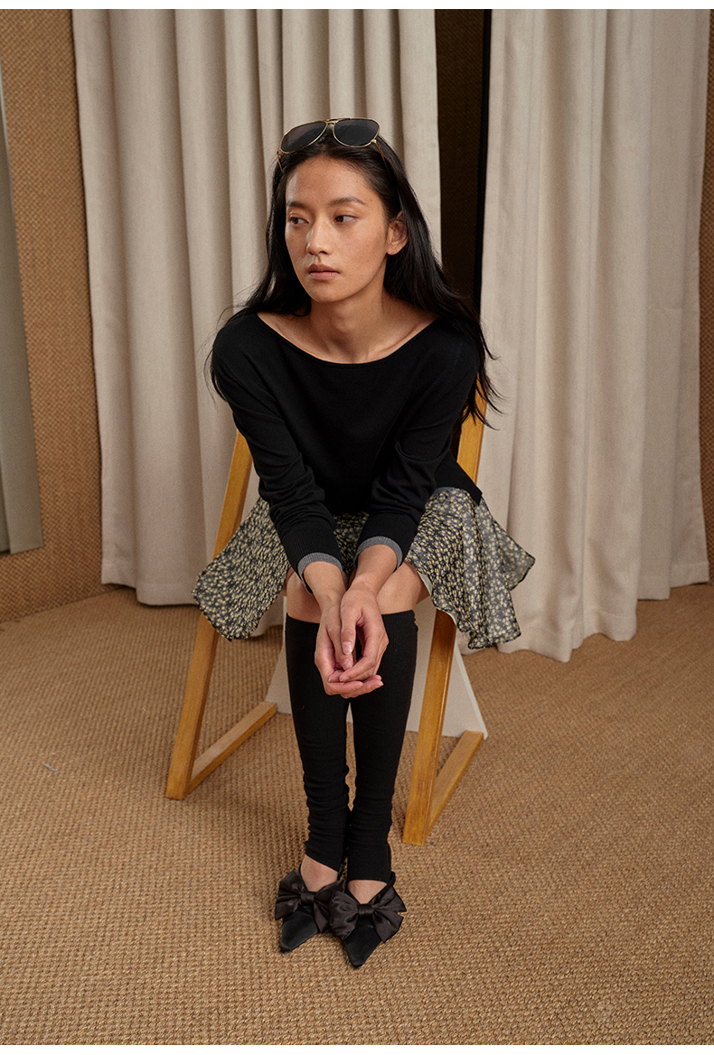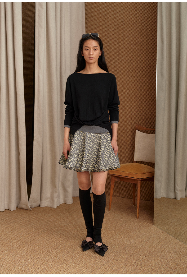 NUTH 披肩毛衣假两件上衣灰色针织衫女