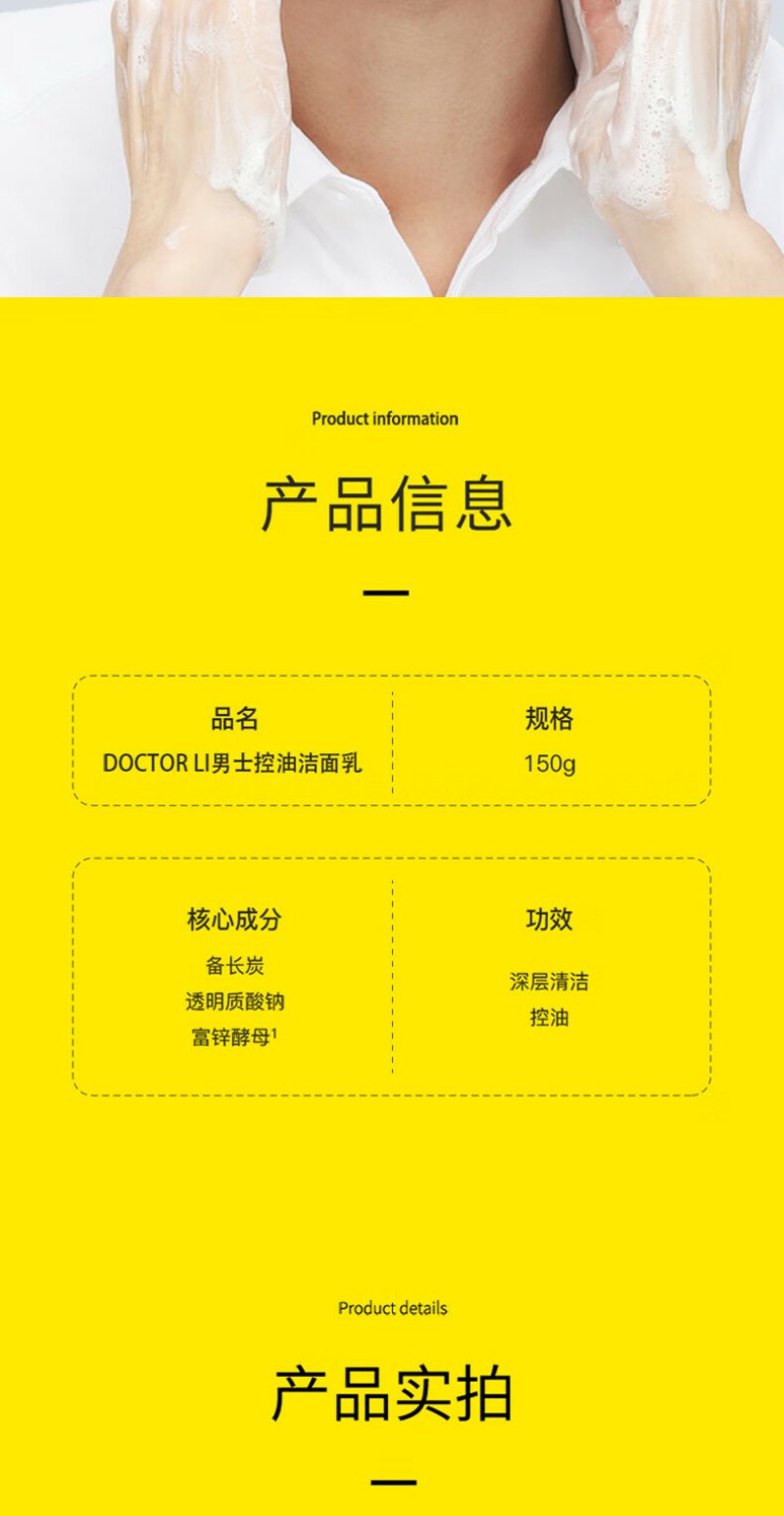 DOCTOR LI 男士控油洁面乳(备长炭爽肤型) 150g LYS-004
