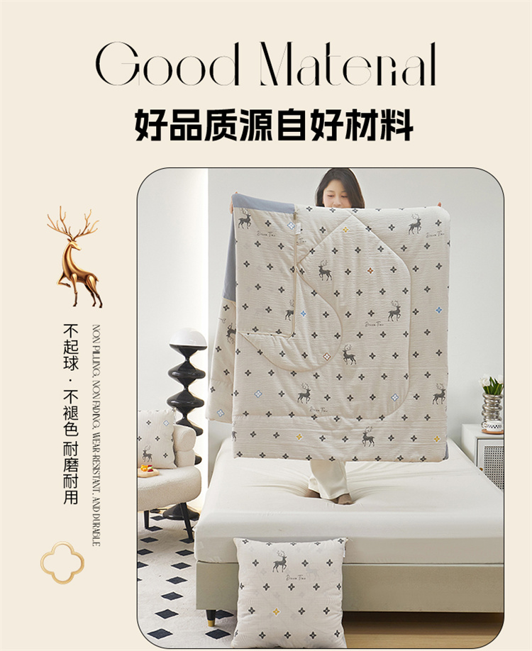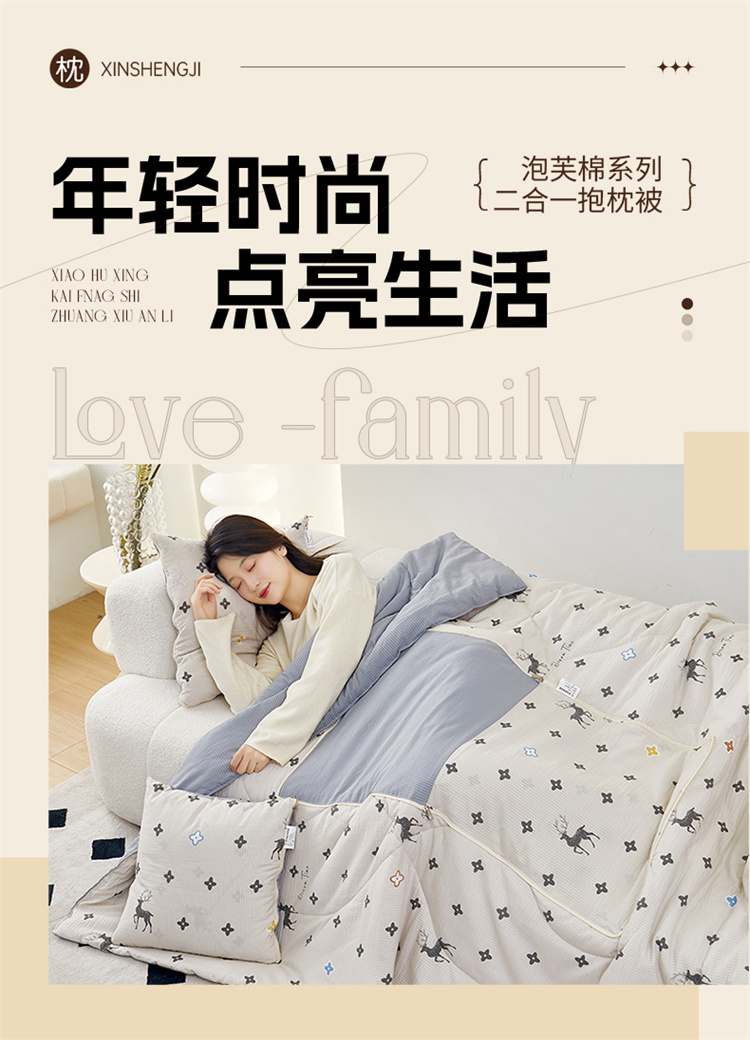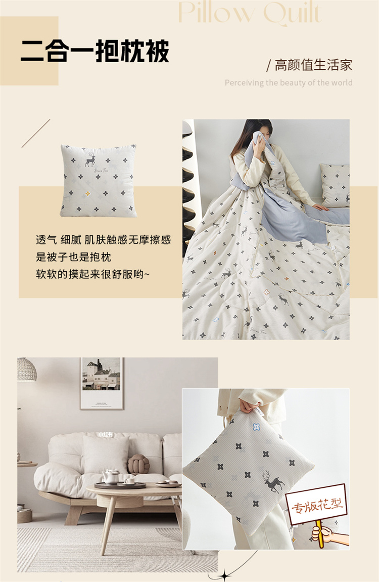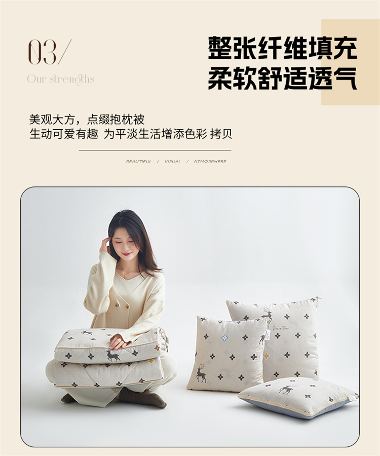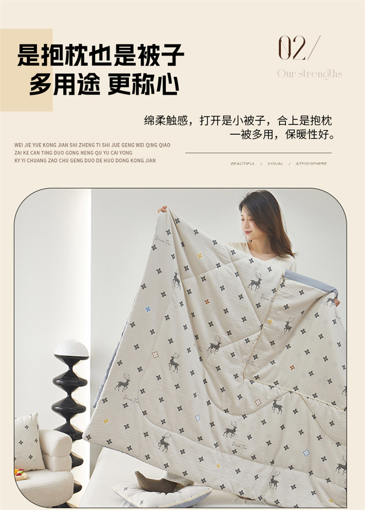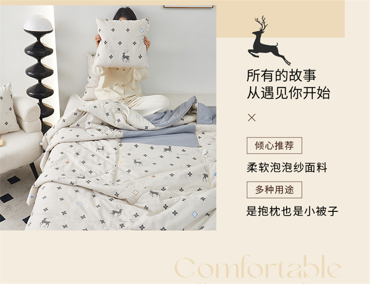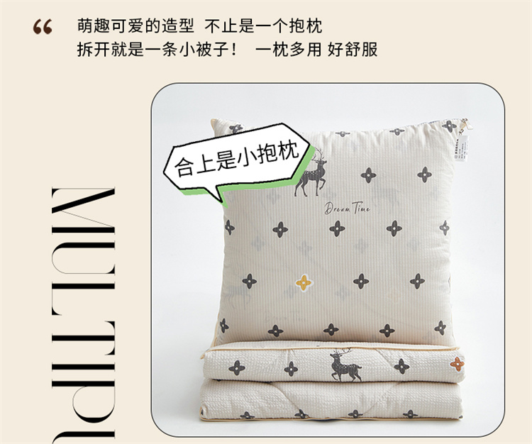 南方生活奶油泡芙二合一抱枕被-北欧鹿(40*40打开100*150cm)