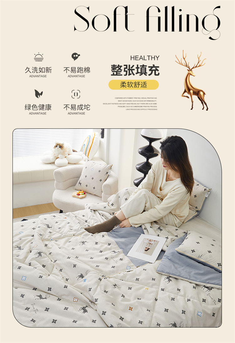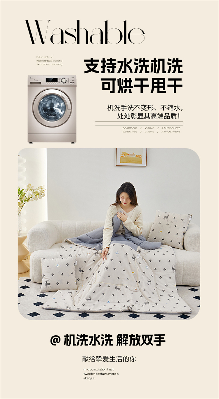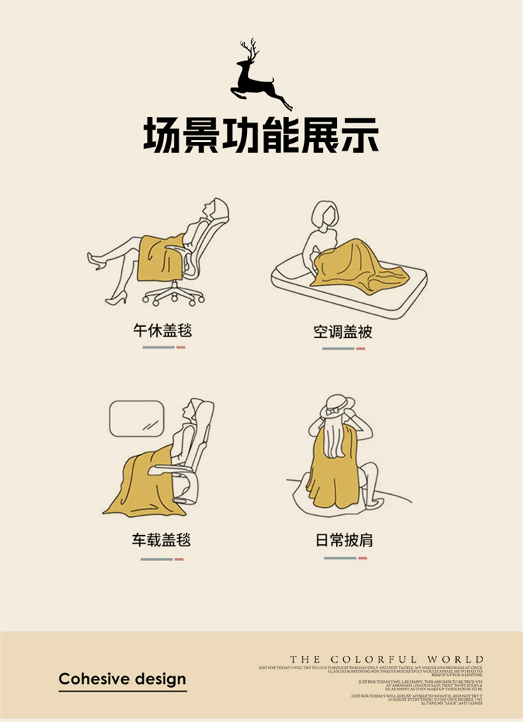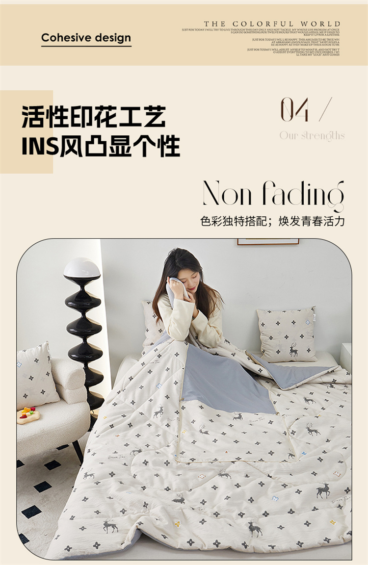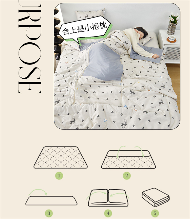 南方生活奶油泡芙二合一抱枕被-北欧鹿(40*40打开100*150cm)