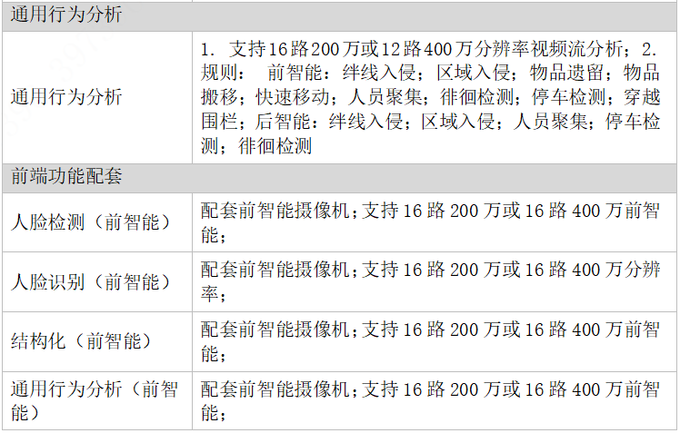 l6、支持16路200万或12路400万分辨率后智能通用行为分析,每路支持10条规则;