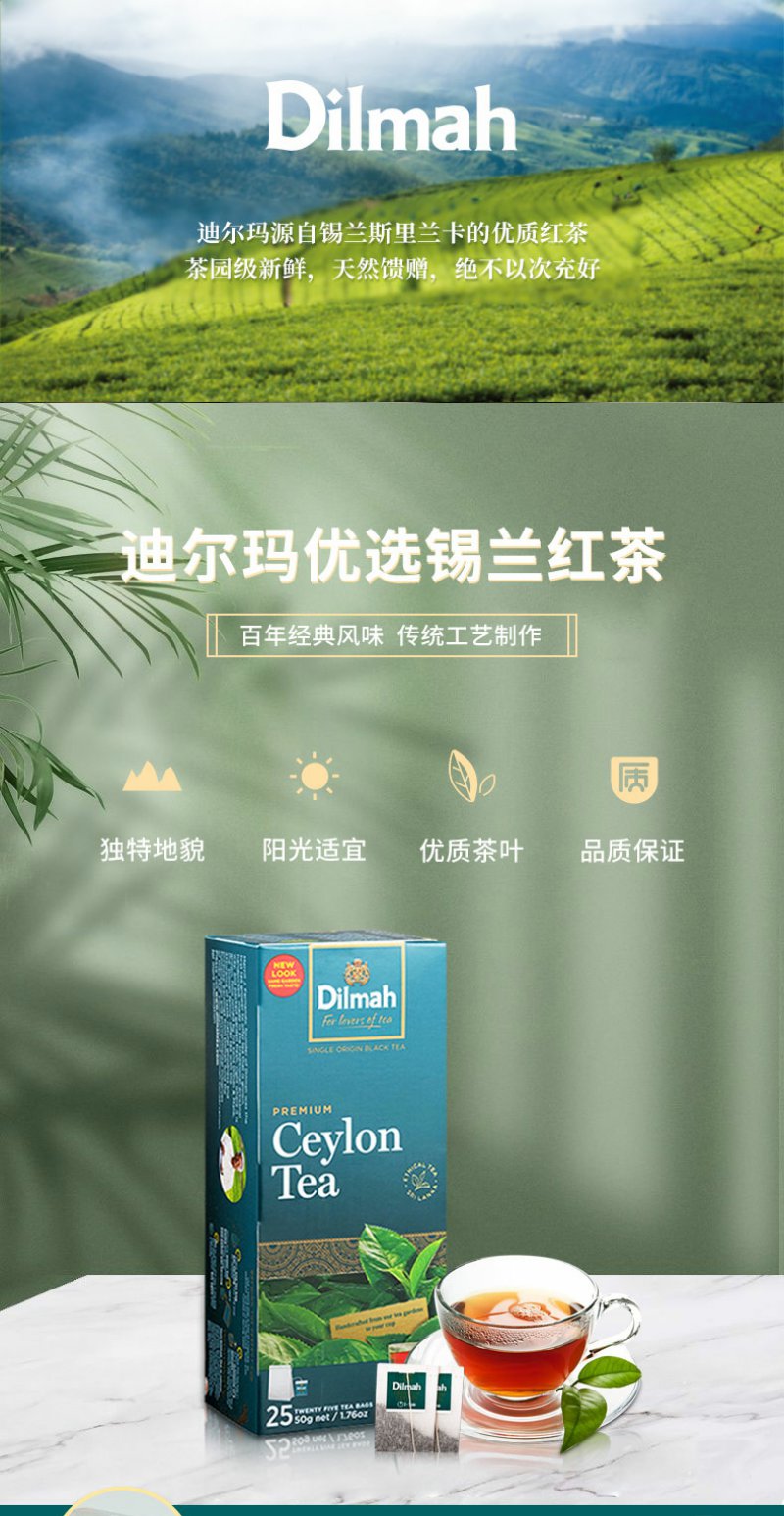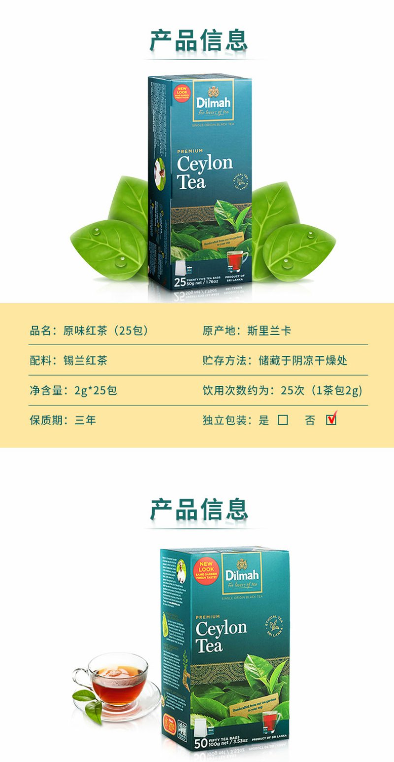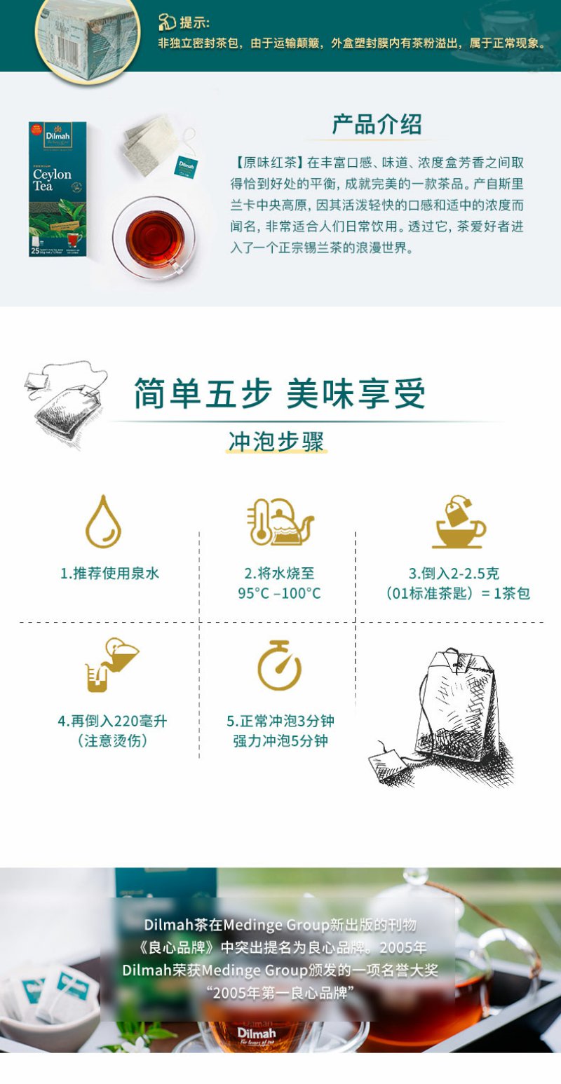 Dilmah迪尔玛(原味红茶) 锡兰红茶冷泡茶奶茶包 50包
