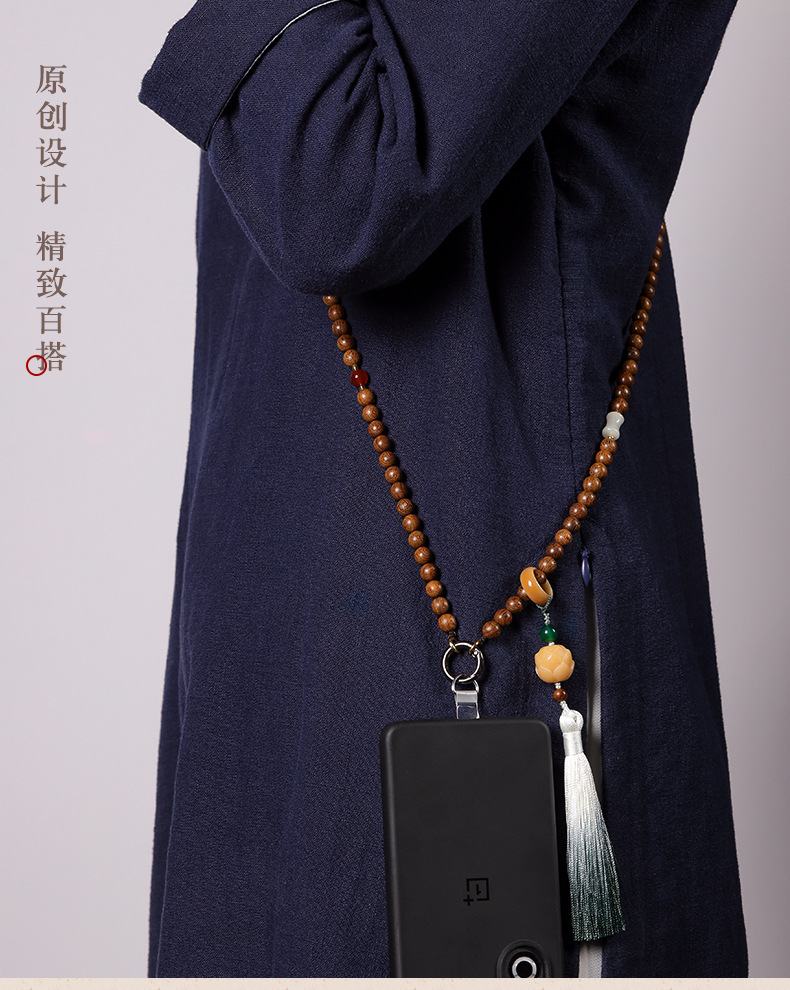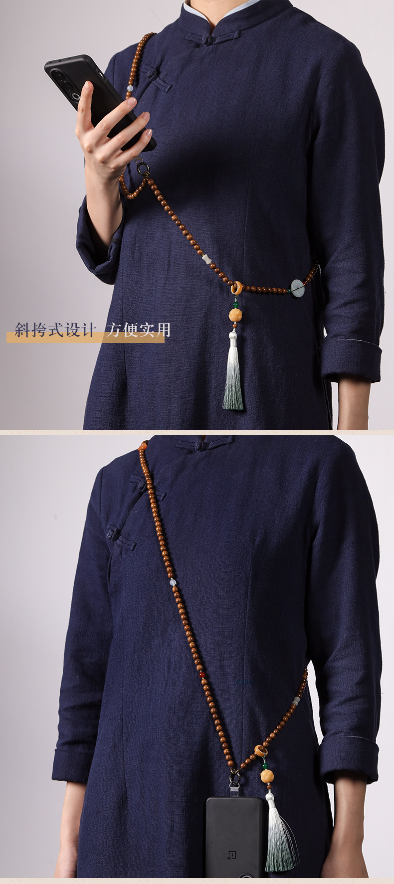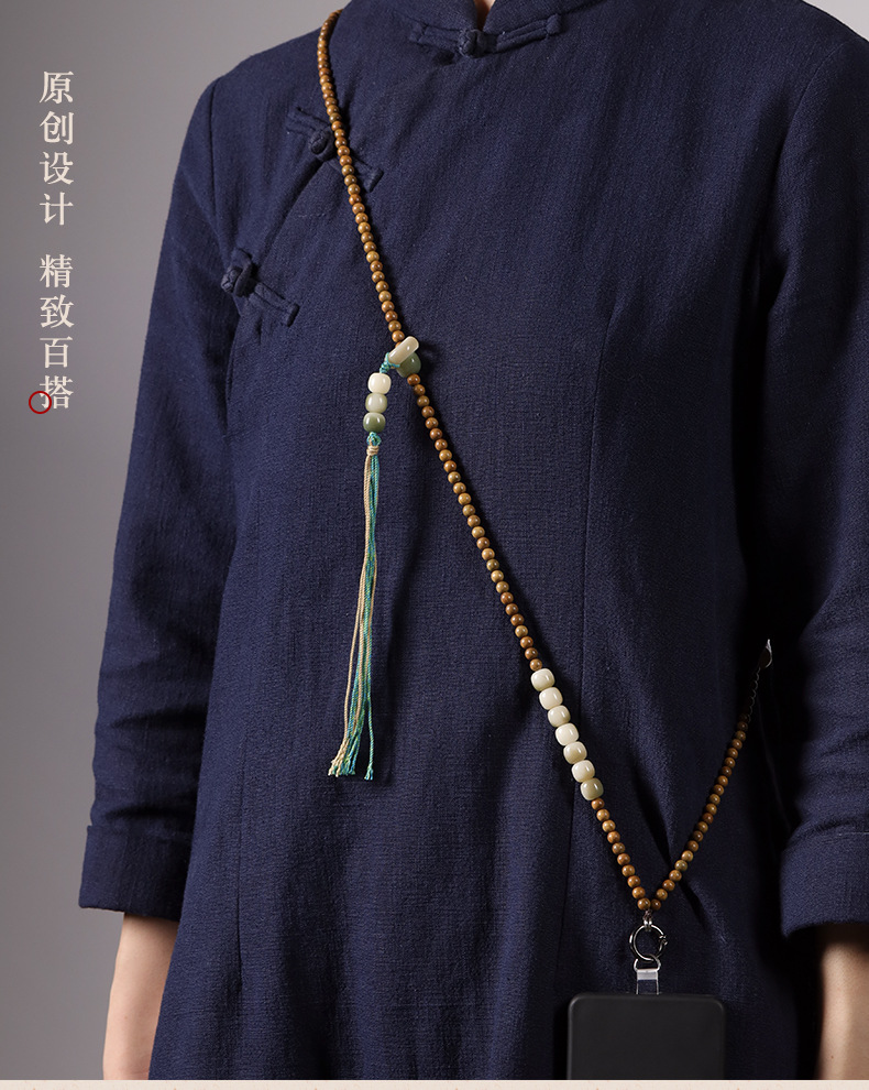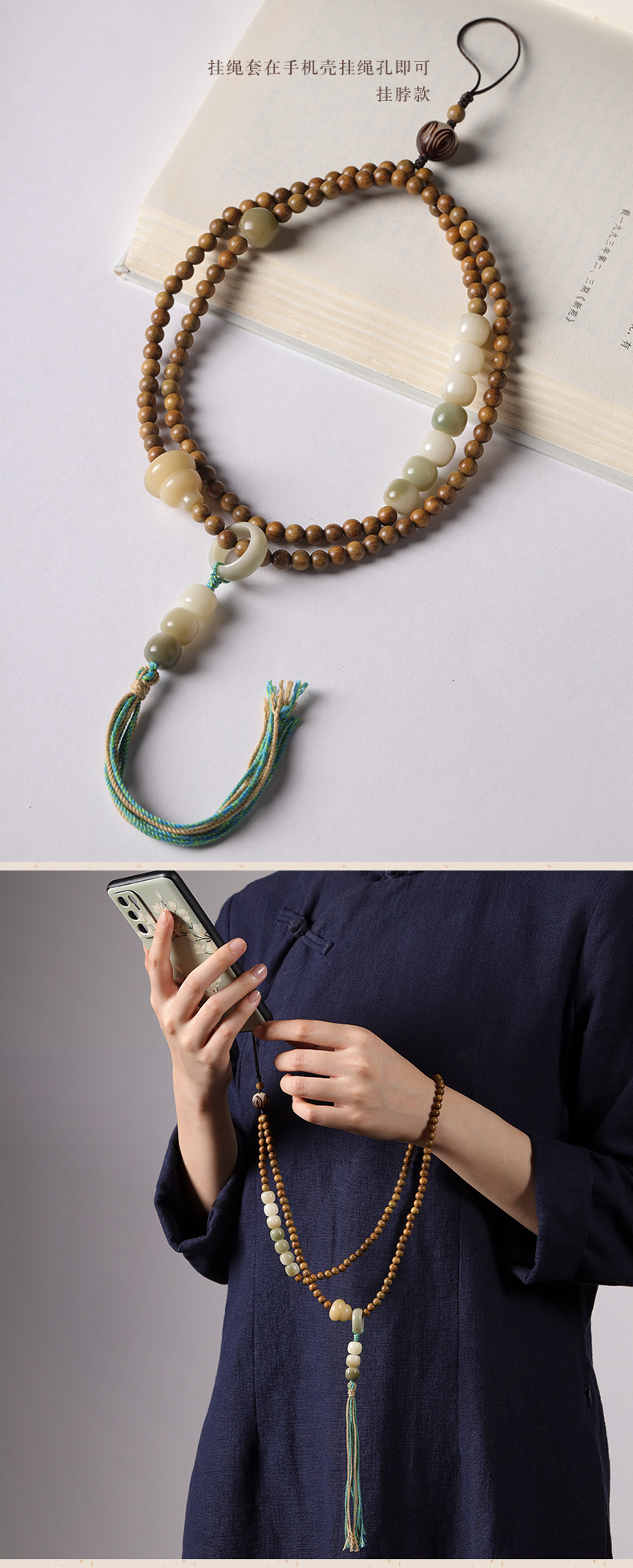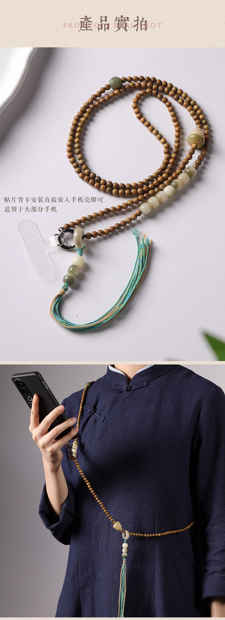 【敦煌檀木斜挎手机链】敦煌福泽原创国风绿檀木 金丝檀菩提新中式斜跨款可背手机挂链绳防摔防丢手机挂饰