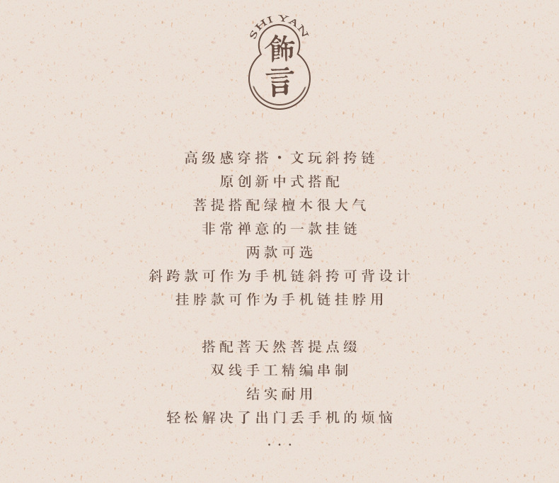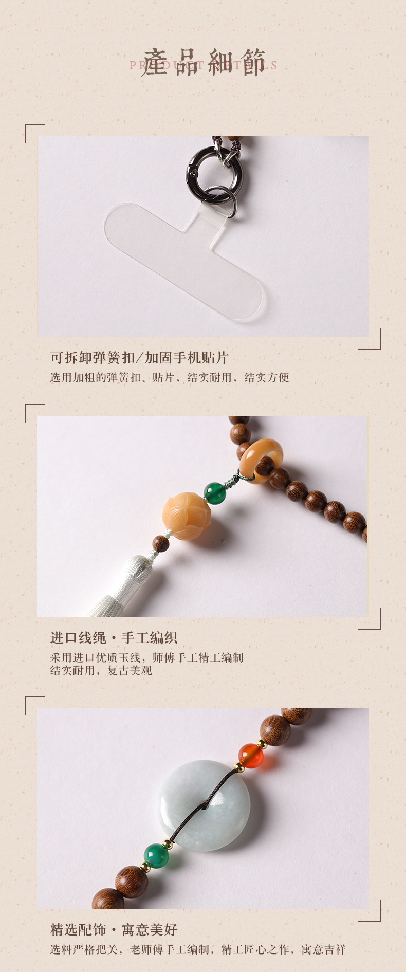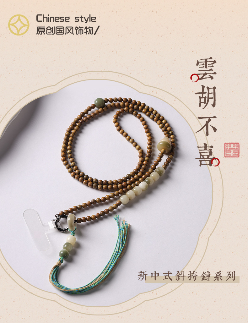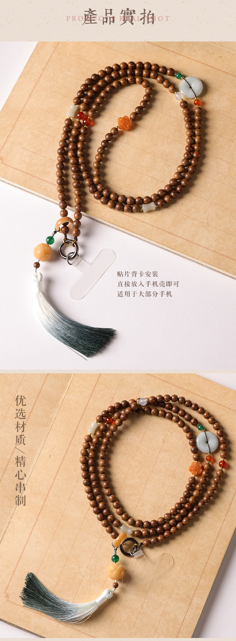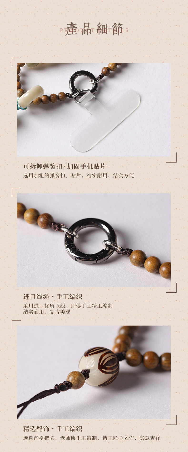 【敦煌檀木斜挎手机链】敦煌福泽原创国风绿檀木 金丝檀菩提新中式斜跨款可背手机挂链绳防摔防丢手机挂饰