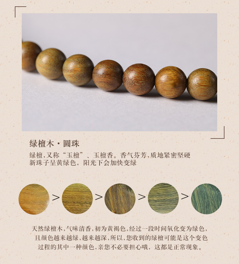 【产品尺寸】绿檀木直径约6mm、周长约72cm、平铺总长度约44cm