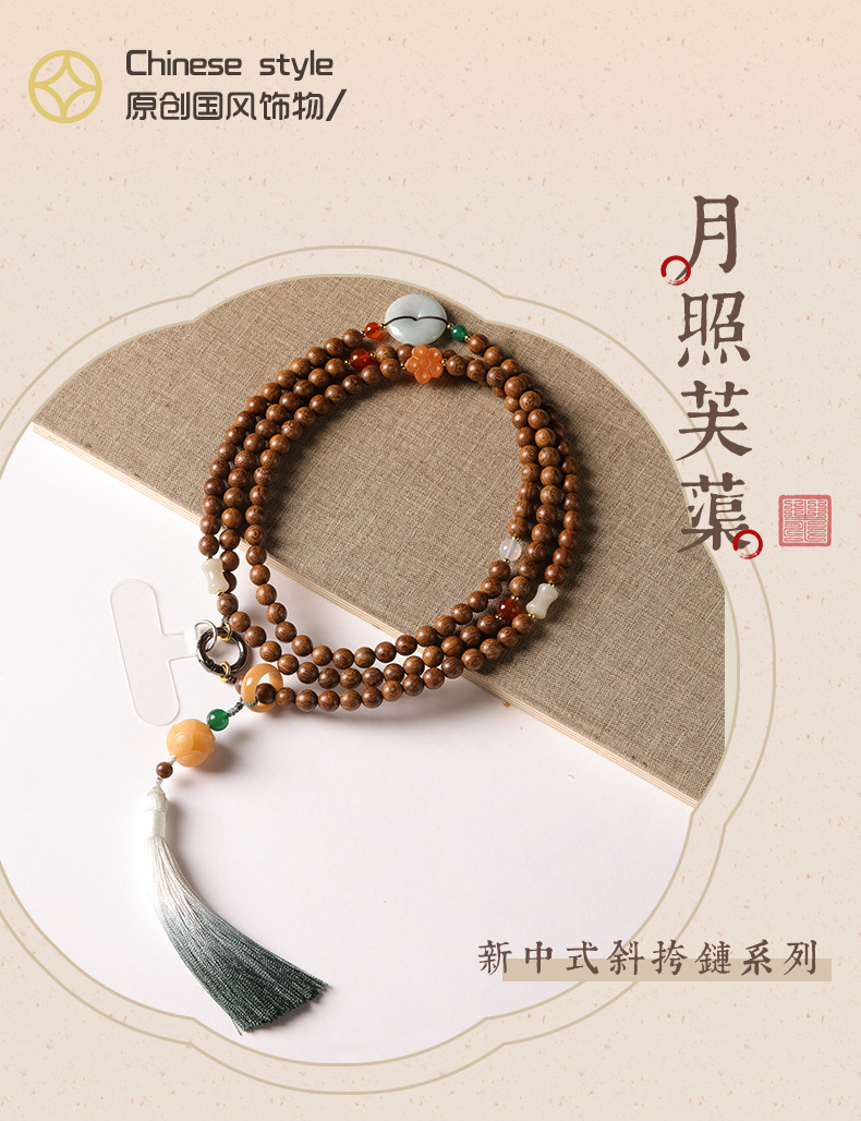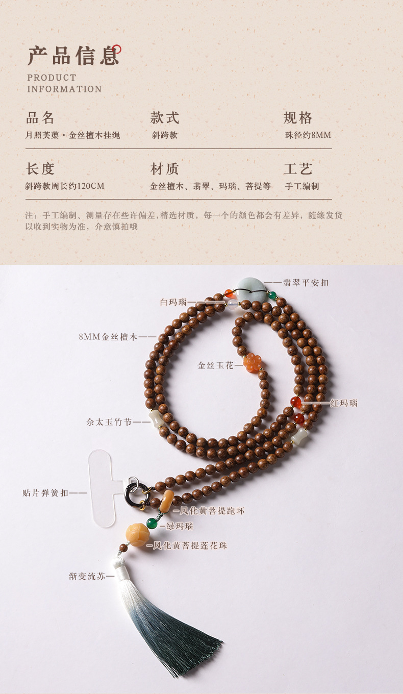【品名】月照芙蕖·金丝檀斜挎手机链