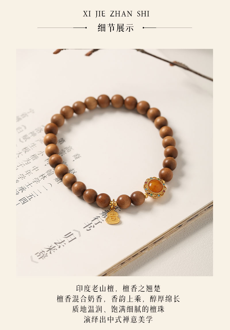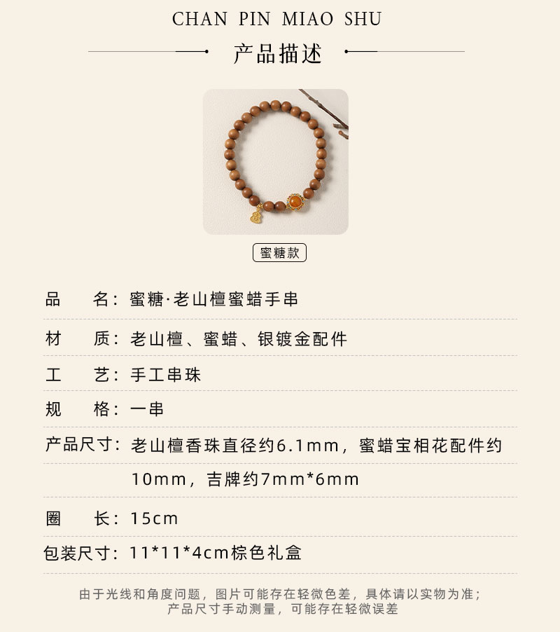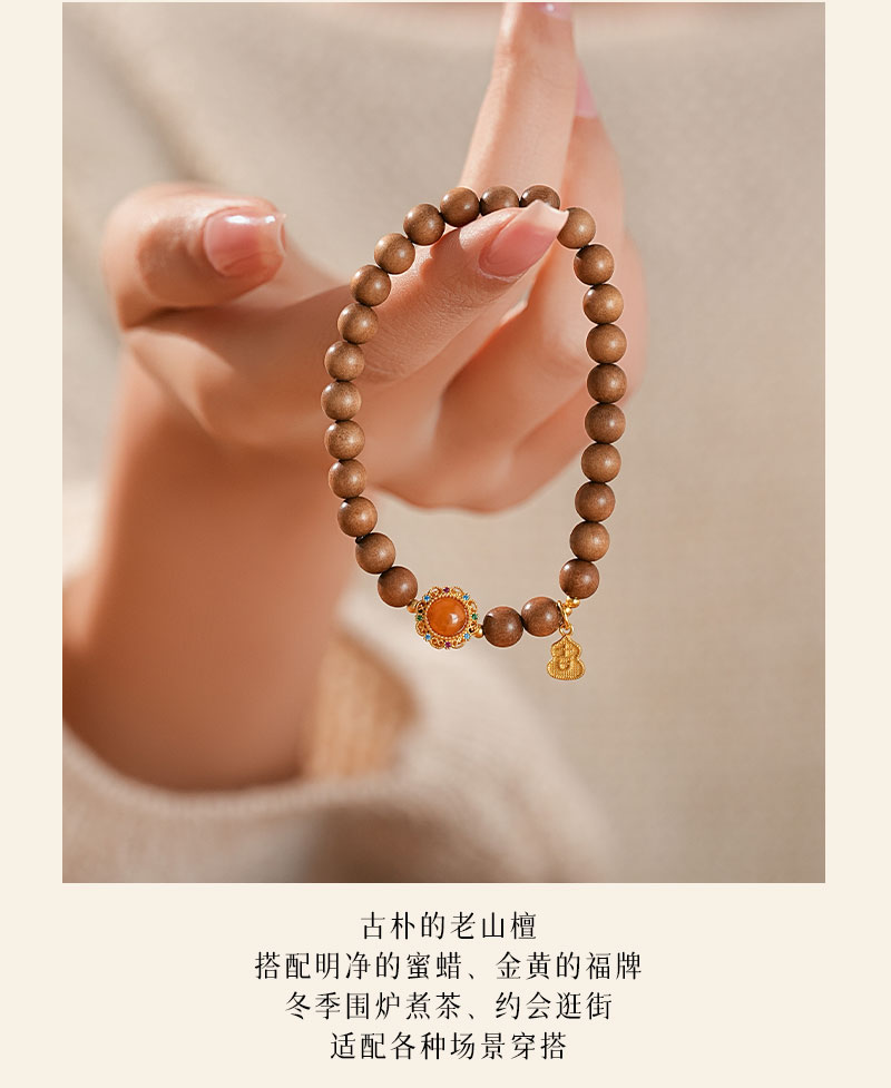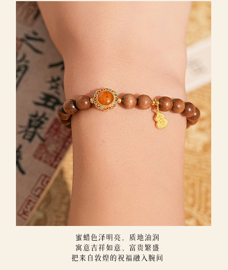 【蜜糖·老山檀蜜蜡手串·带证书】敦煌福泽小众祈福老山檀手串