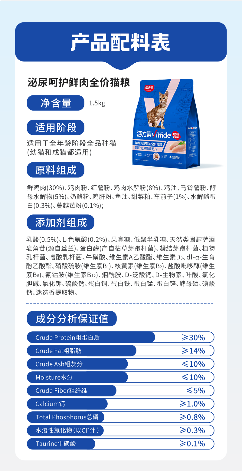 【雷米高】活力泰鲜肉系列功日能粮泌尿呵护全期全价猫粮1.5kg 活力泰泌尿呵护全价猫粮1.5kg