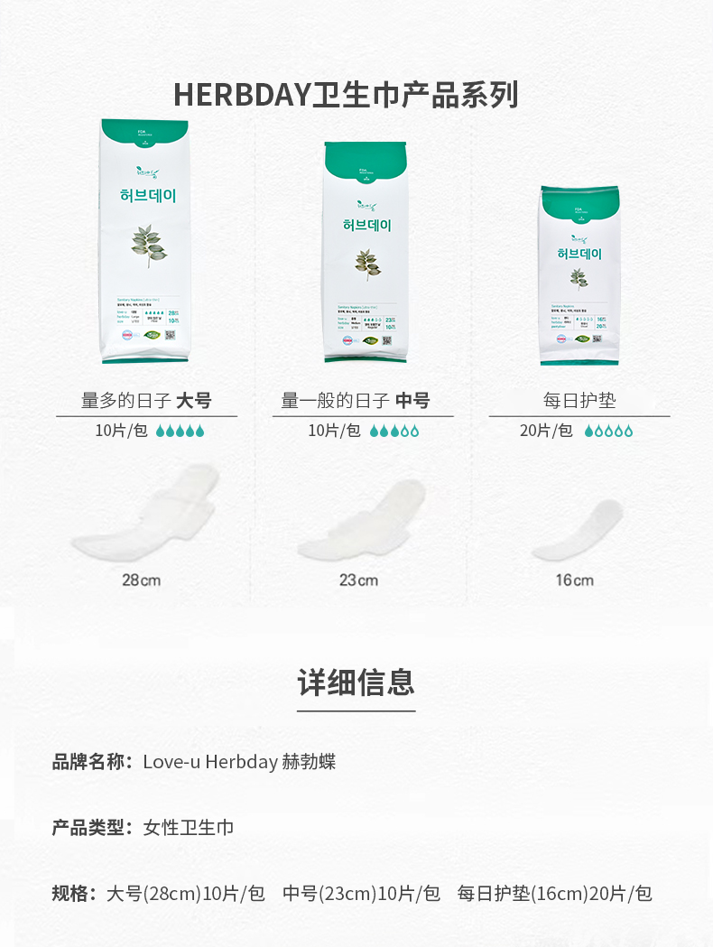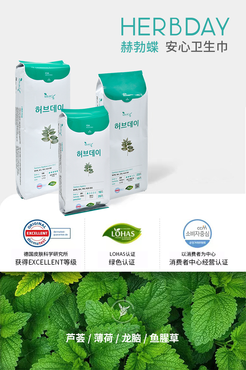 【韩品溯源】【3包/5包/8包】赫勃蝶鱼腥草卫生巾 A-4112