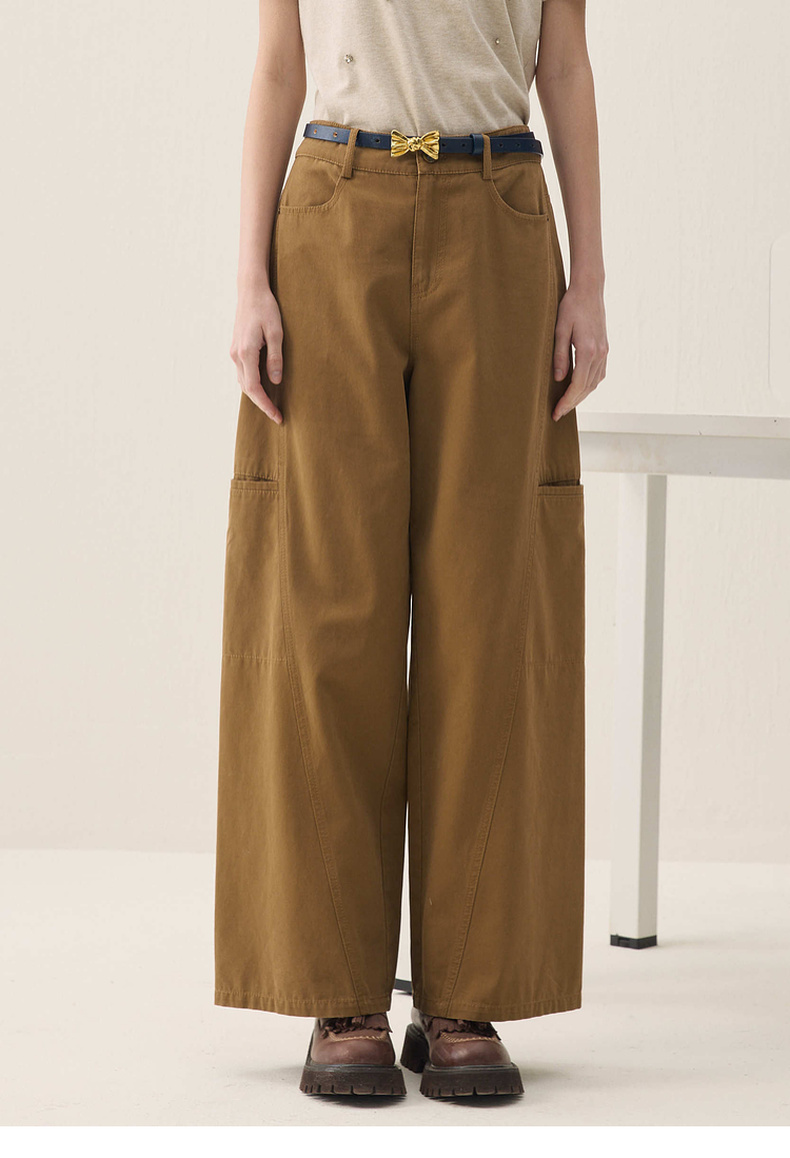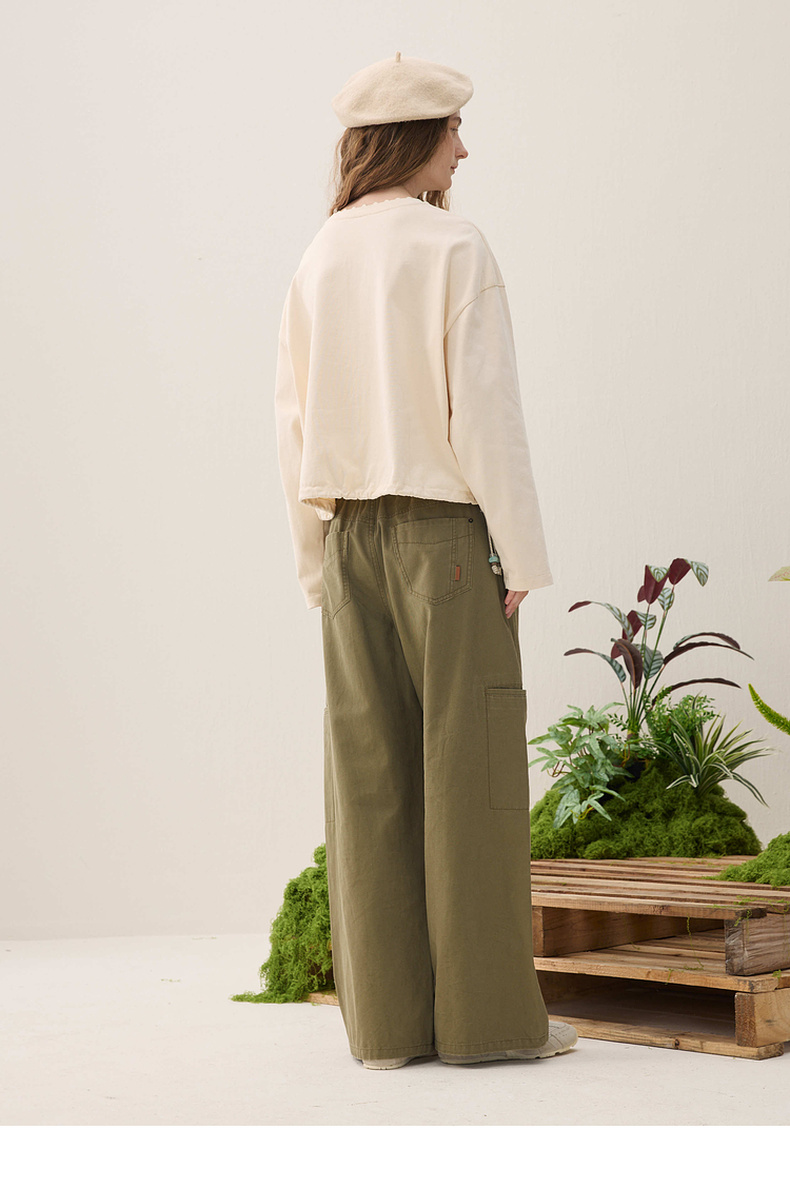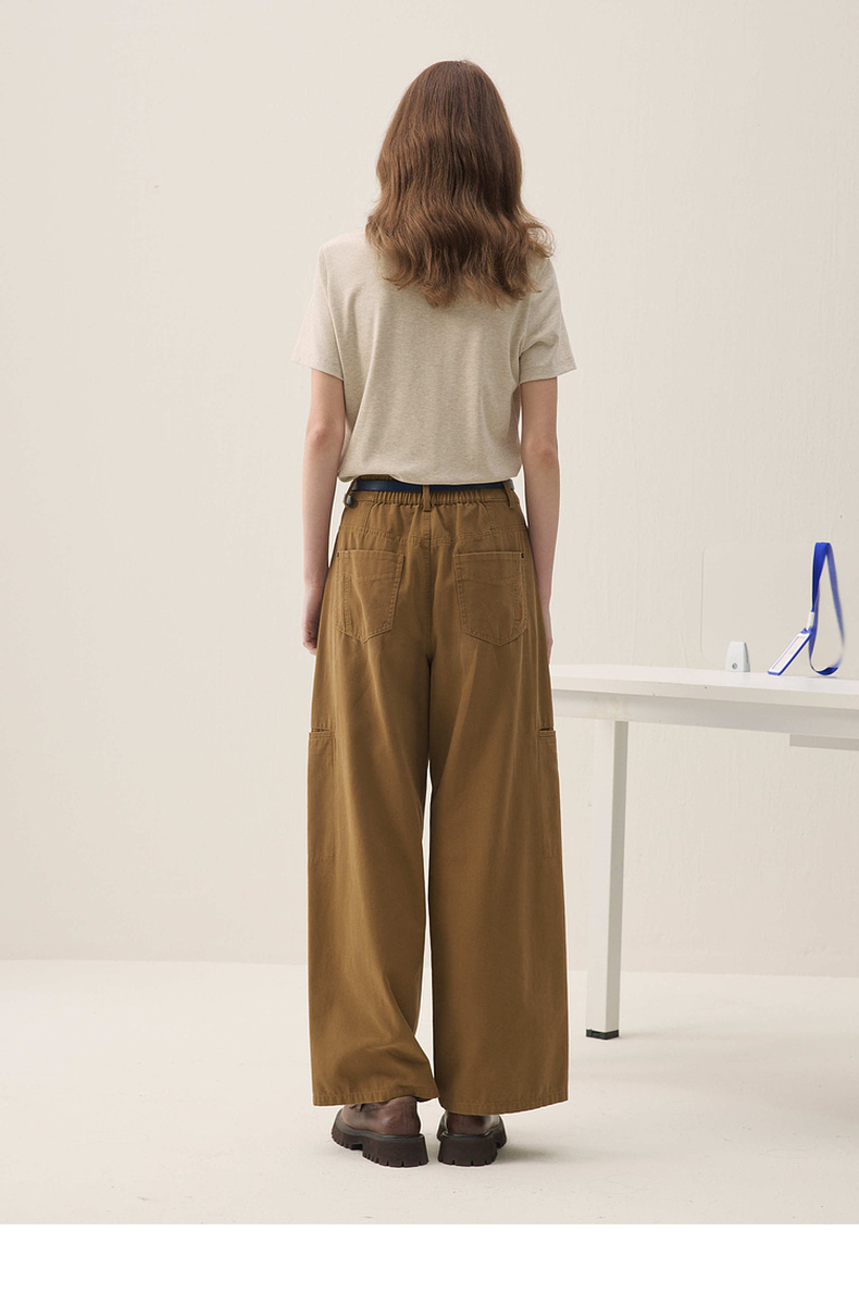 谜底工装阔腿裤长裤2026年夏季新品松紧腰裤脚可调节女262MK0623