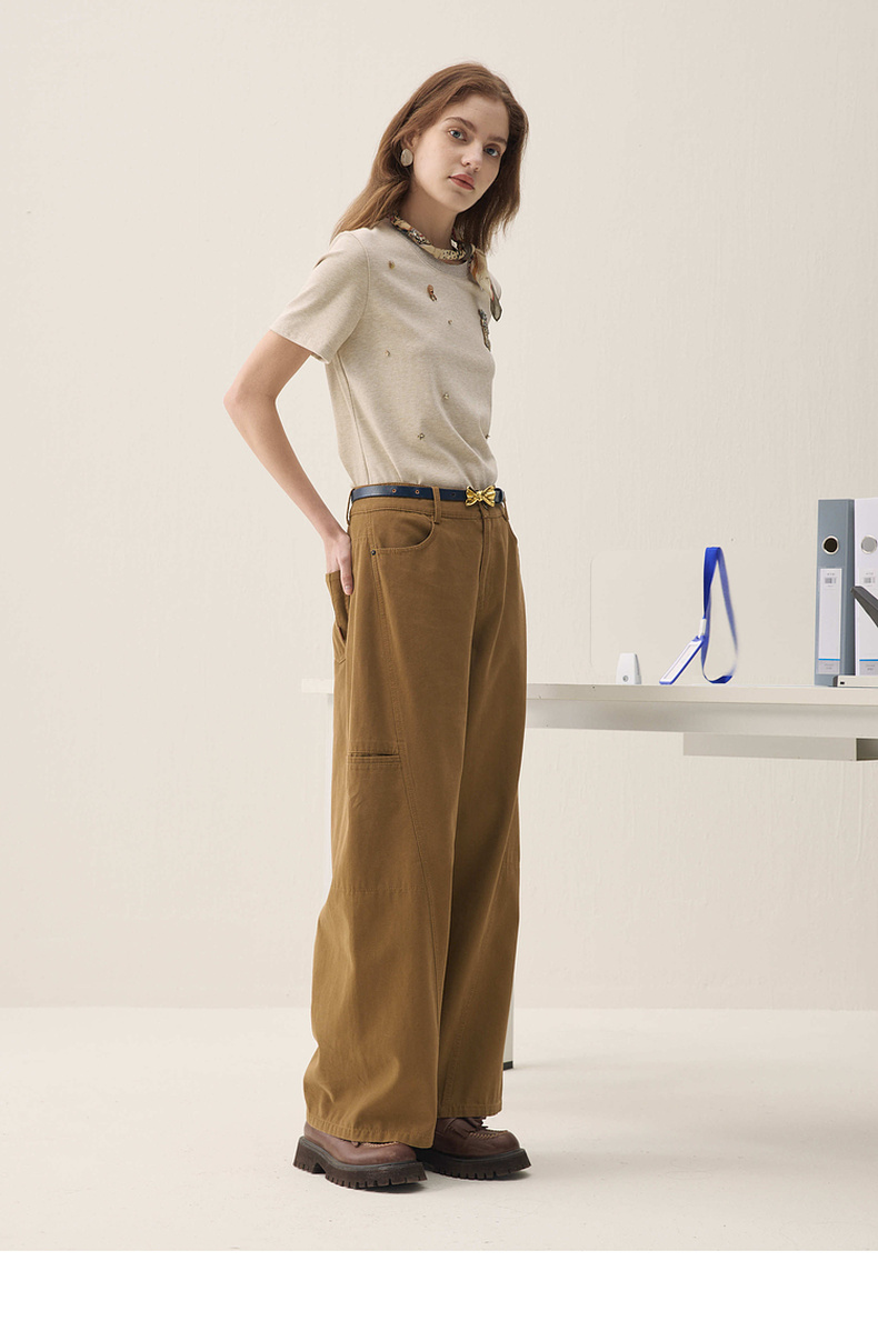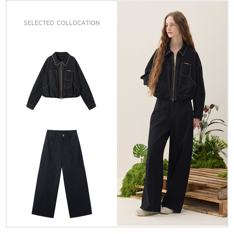 谜底工装直筒裤长裤2026年春季新品时髦洗水侧缝前移女261MK0069