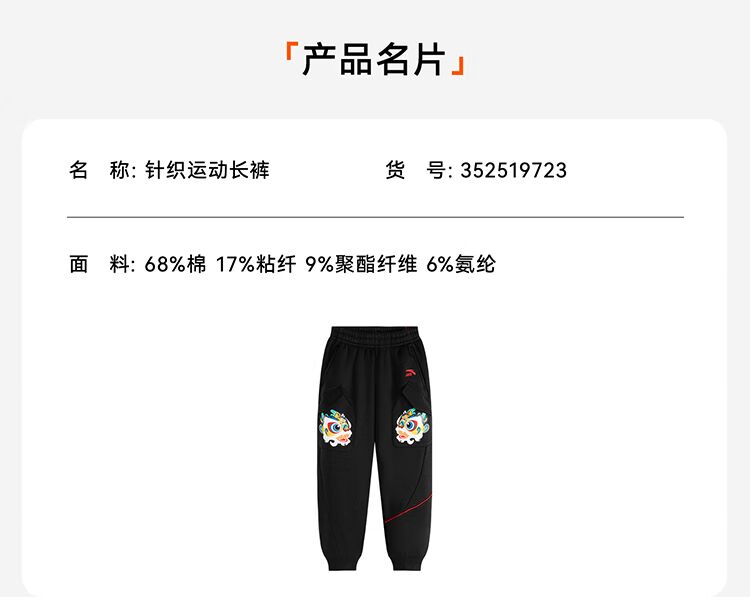 安踏儿童裤子男小童2025年春保暖新年针织运动长裤352519723